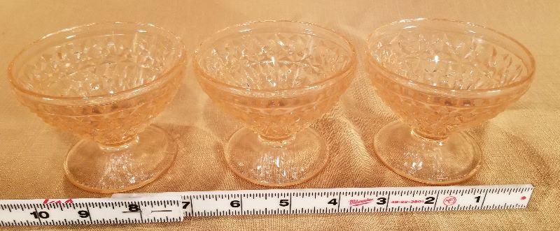 Pink Depression Berry Bowls ““ 3 Total. 3 ½-inches in diameter x 2 ½-inces tall No chips or cracks.