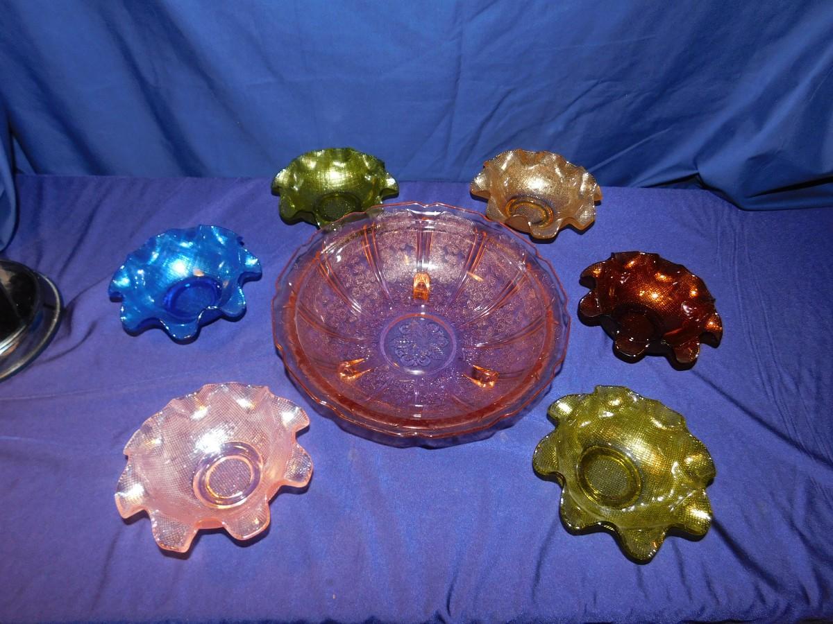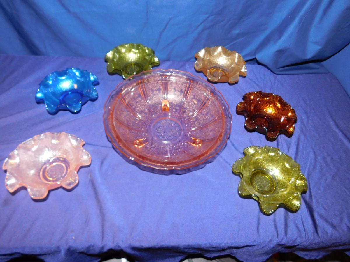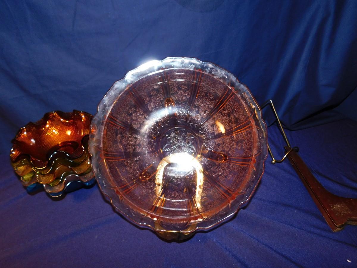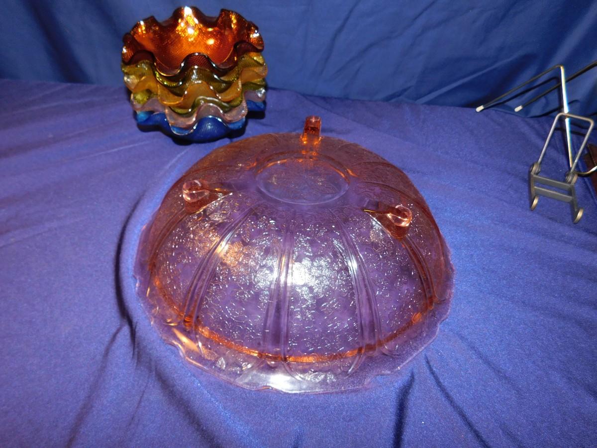 PINK DEPRESSION GLASS AND RUFFLED BOWLS