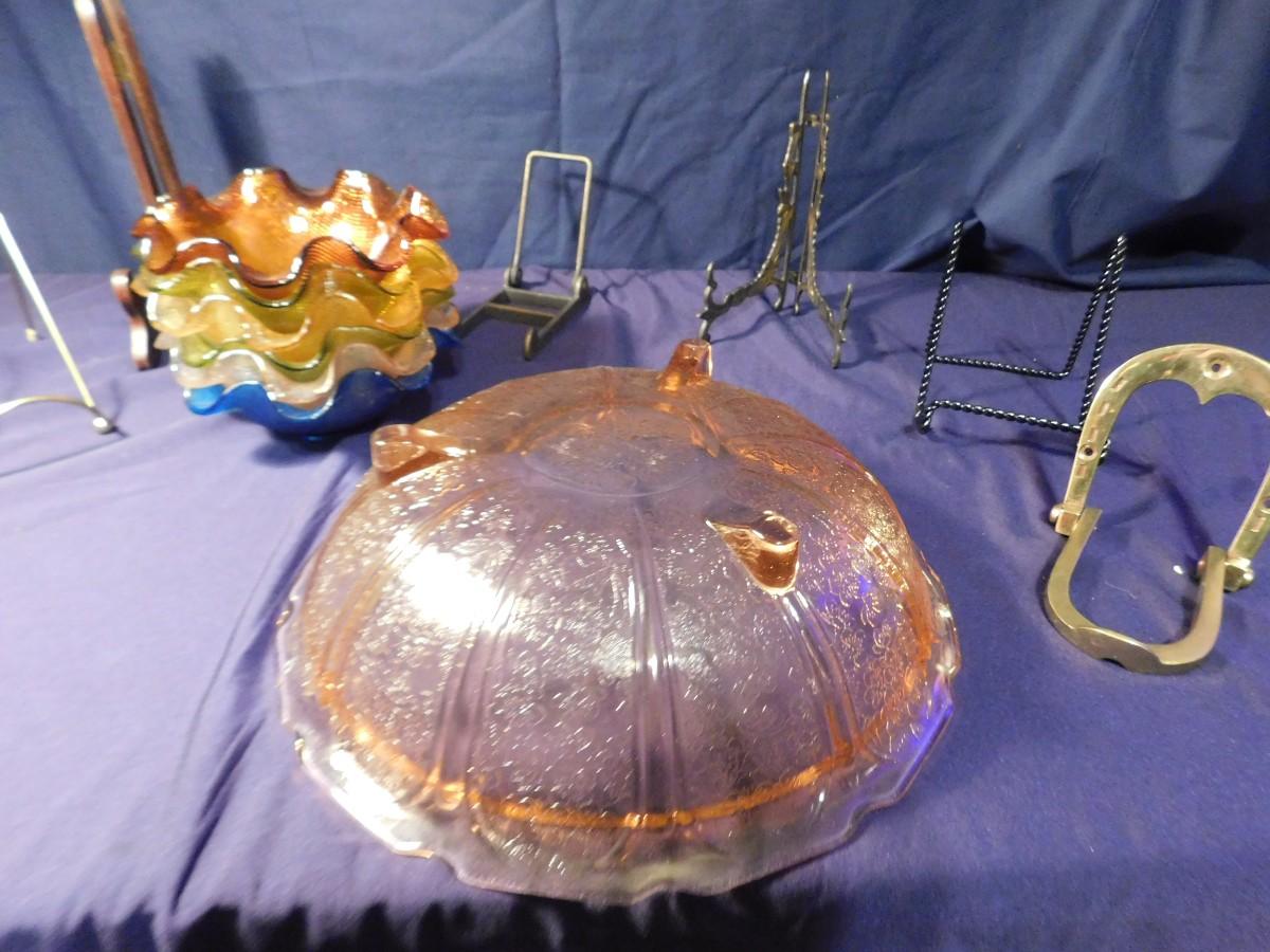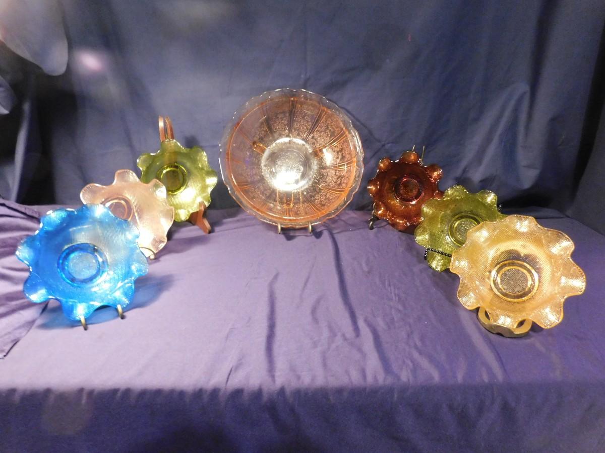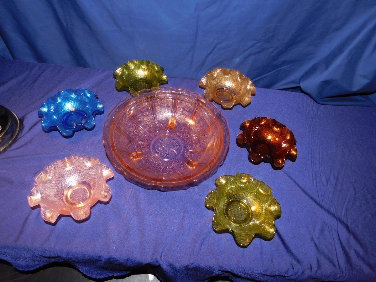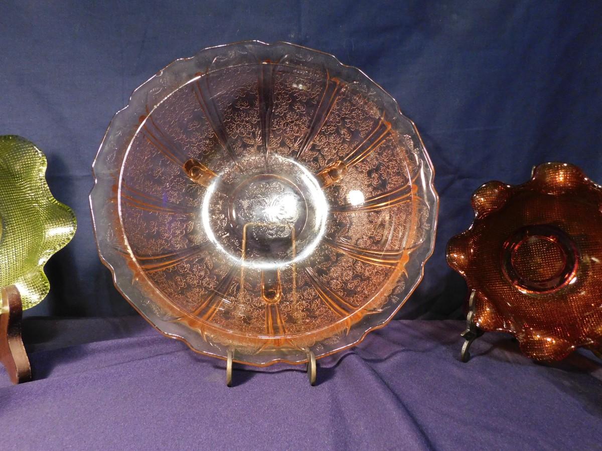 PINK DEPRESSION GLASS AND RUFFLED BOWLS