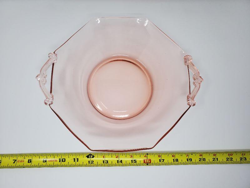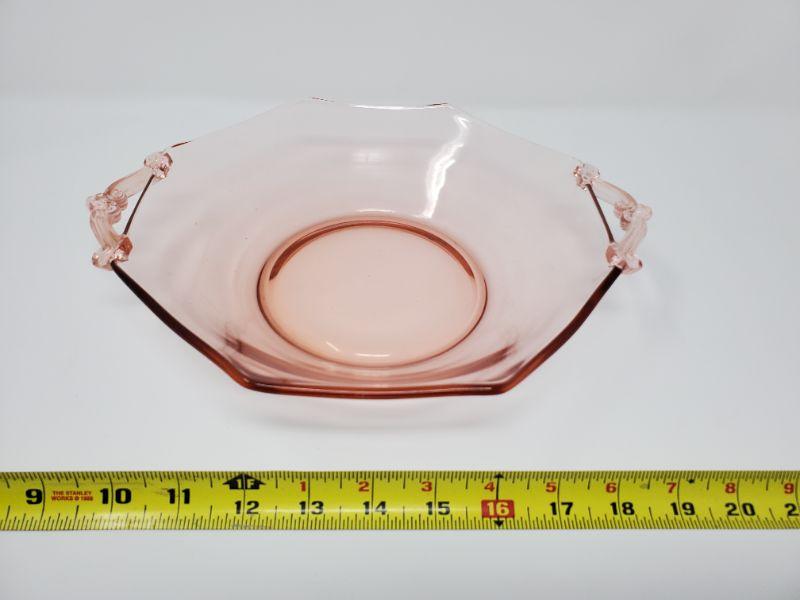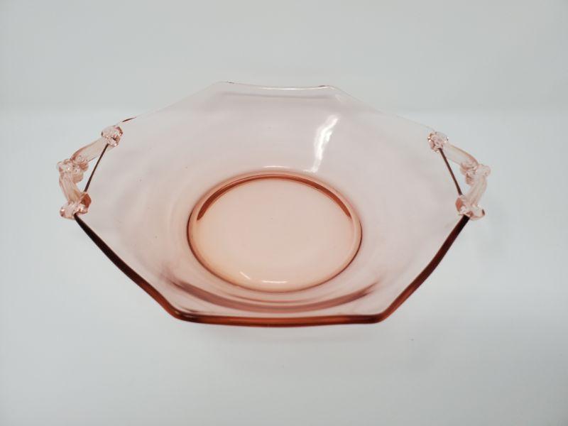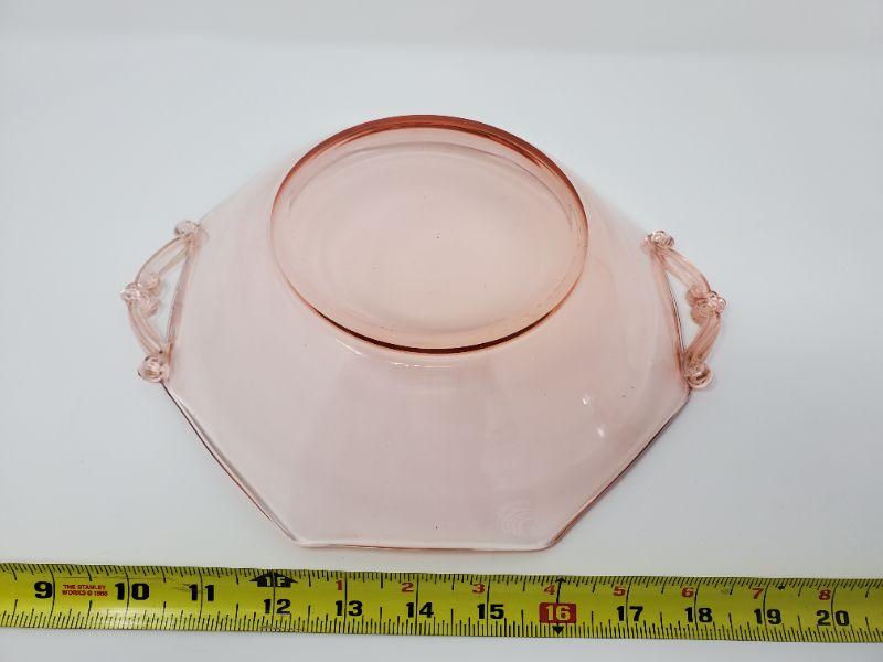 PINK DEPRESSION GLASS BOWL WITH DECORATIVE HANDLES