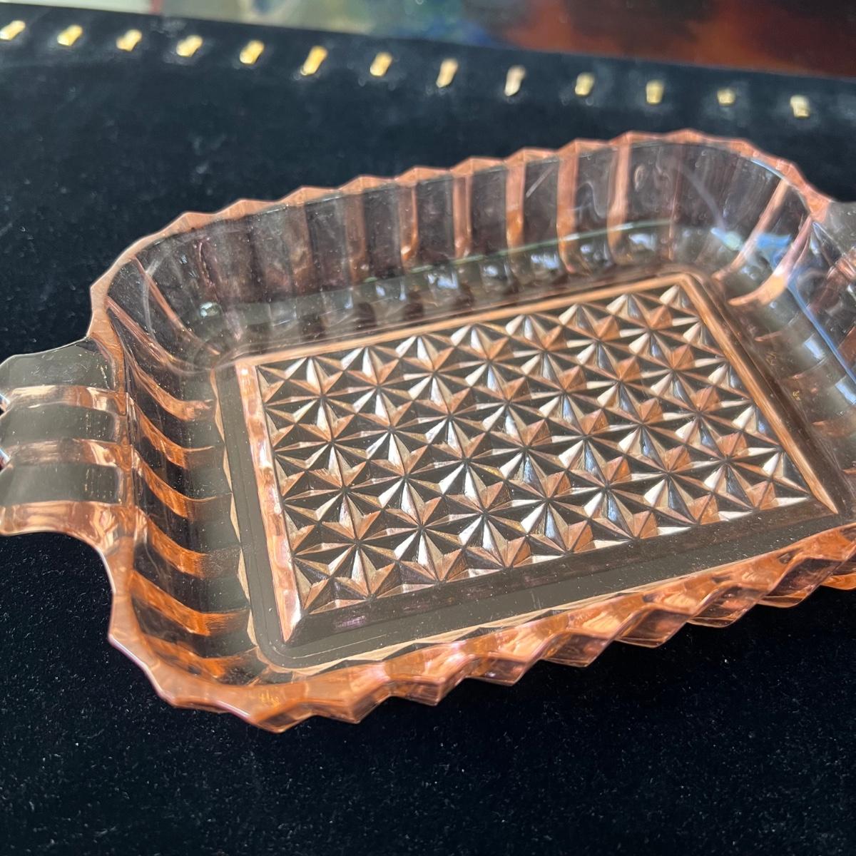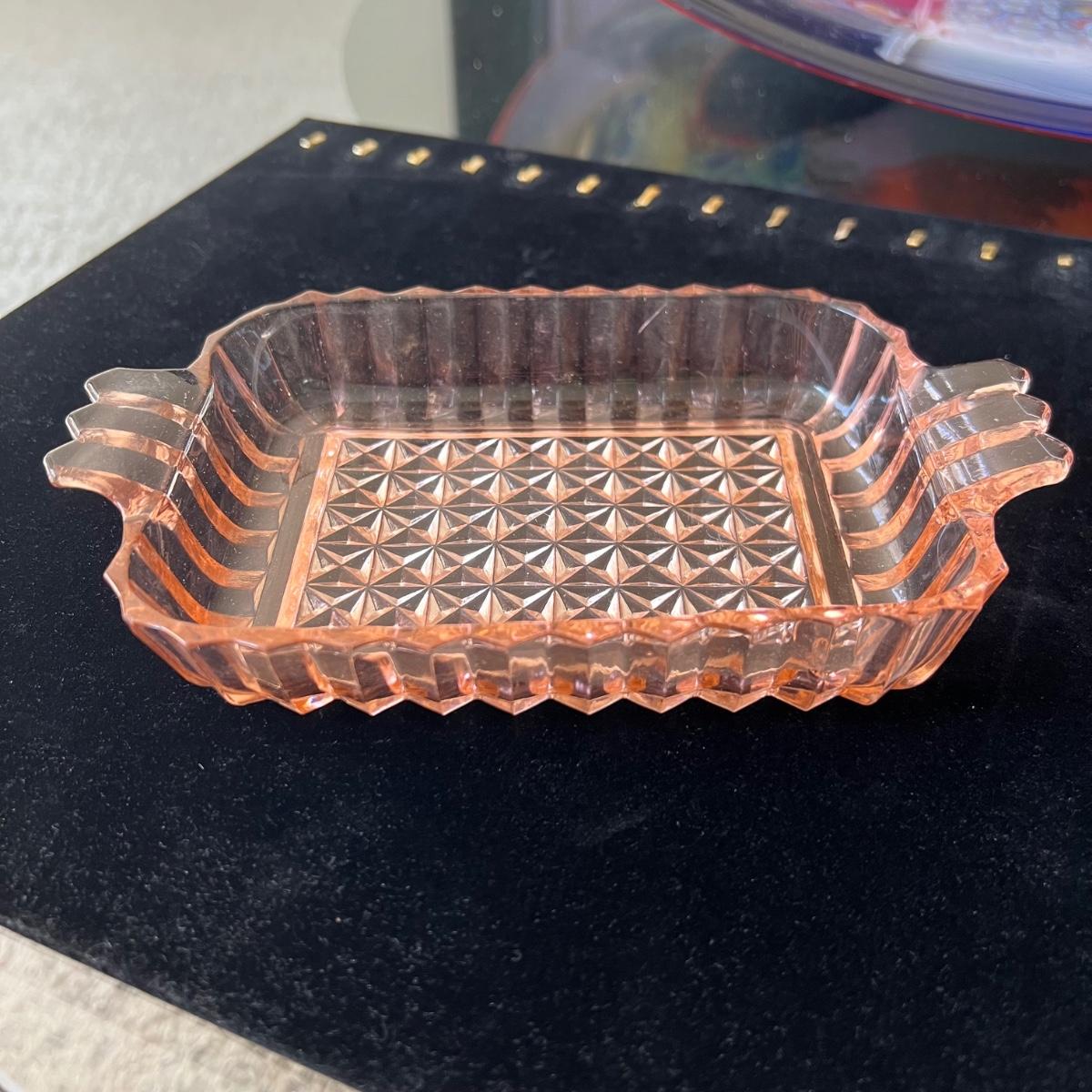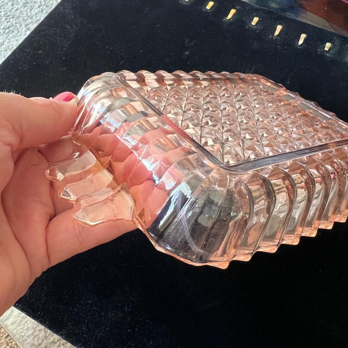 Beautiful vintage pink depression glass candy dish. 7.5 X 4.5