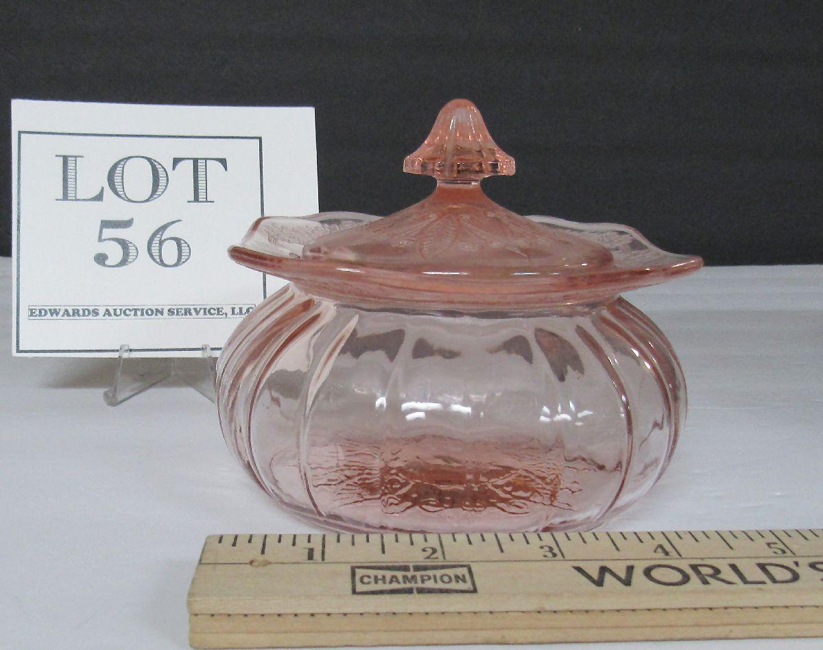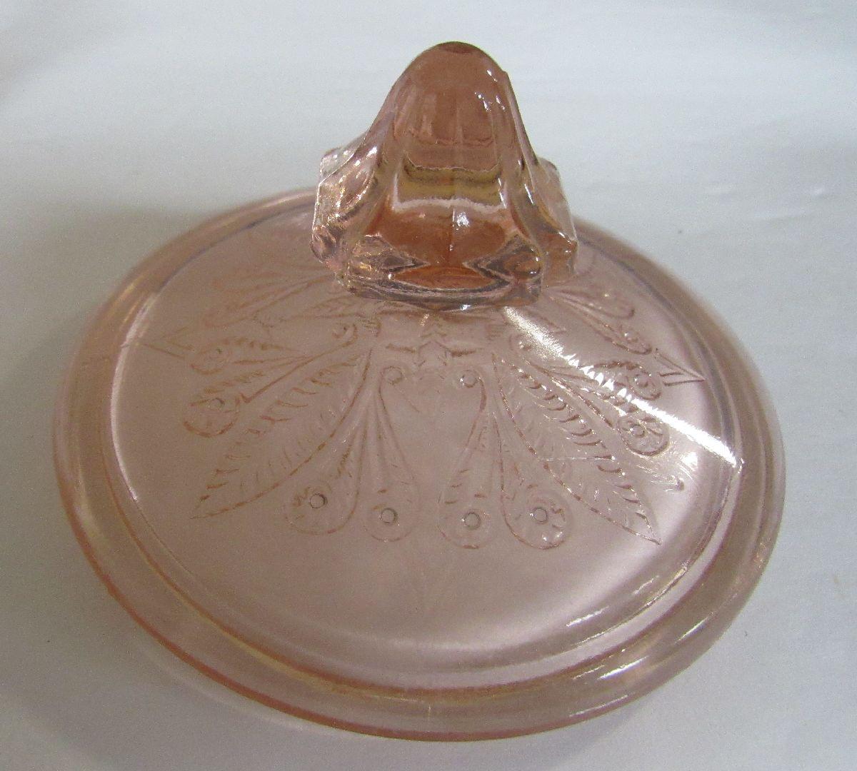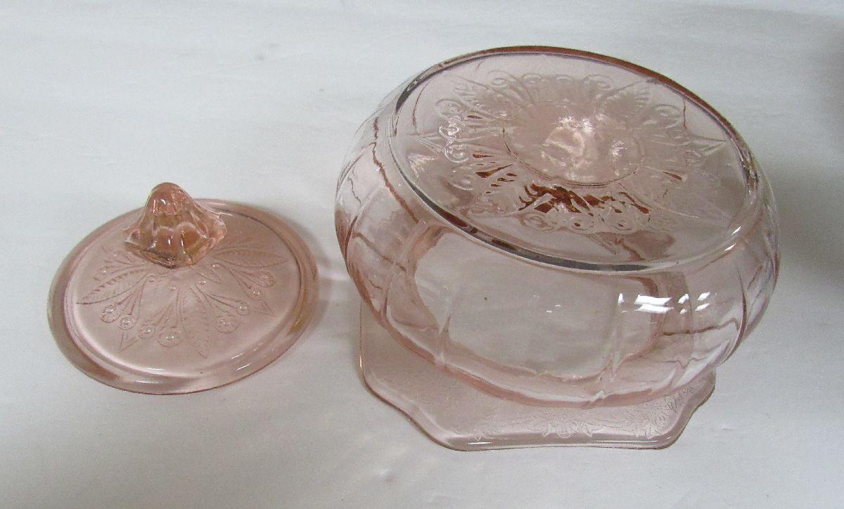 Pink Depression Glass Covered Candy Dish, Adam Pattern