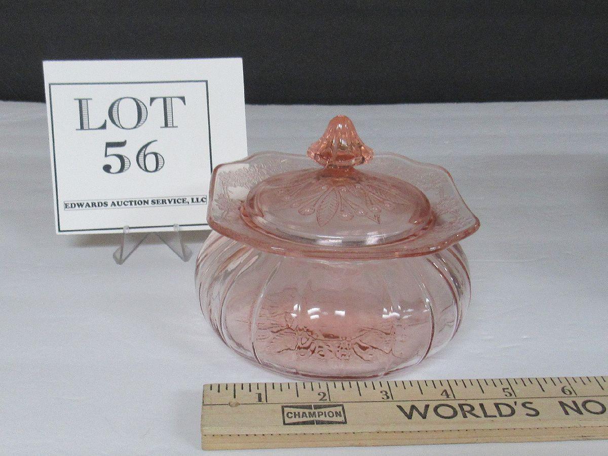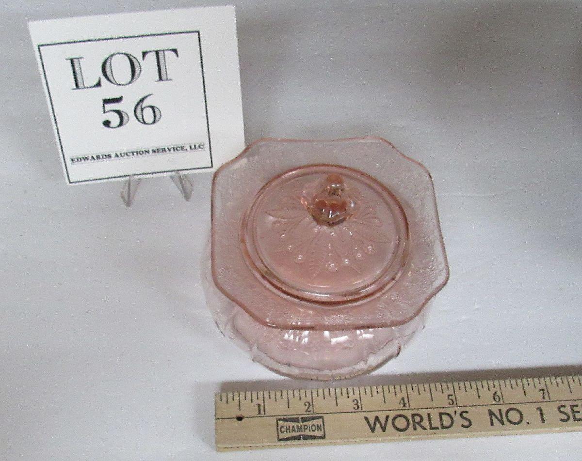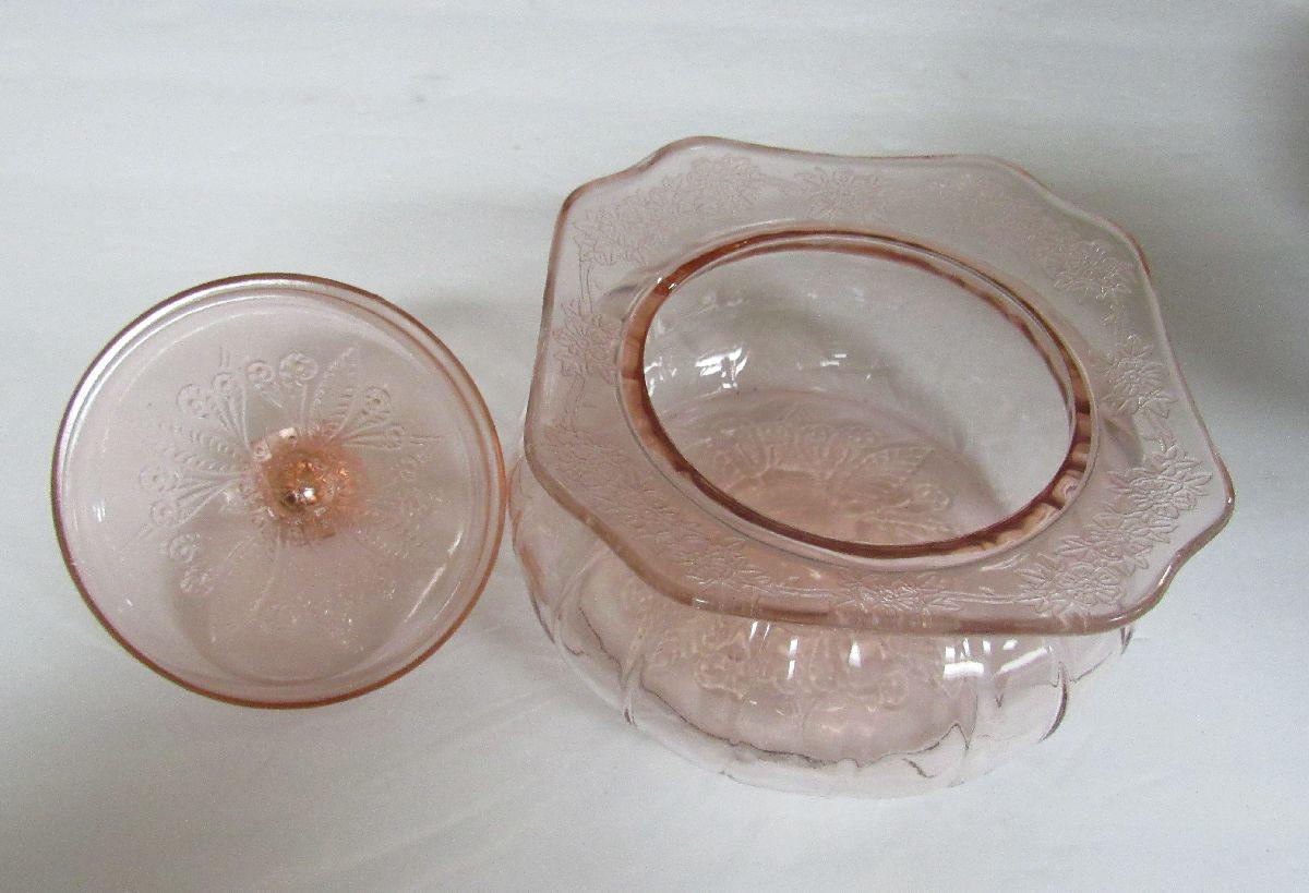 Pink Depression Glass Covered Candy Dish, Adam Pattern