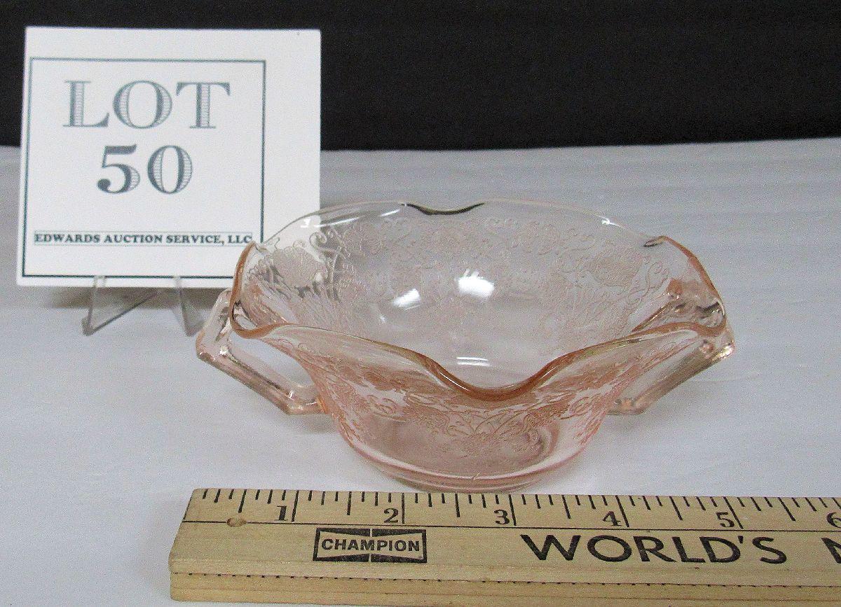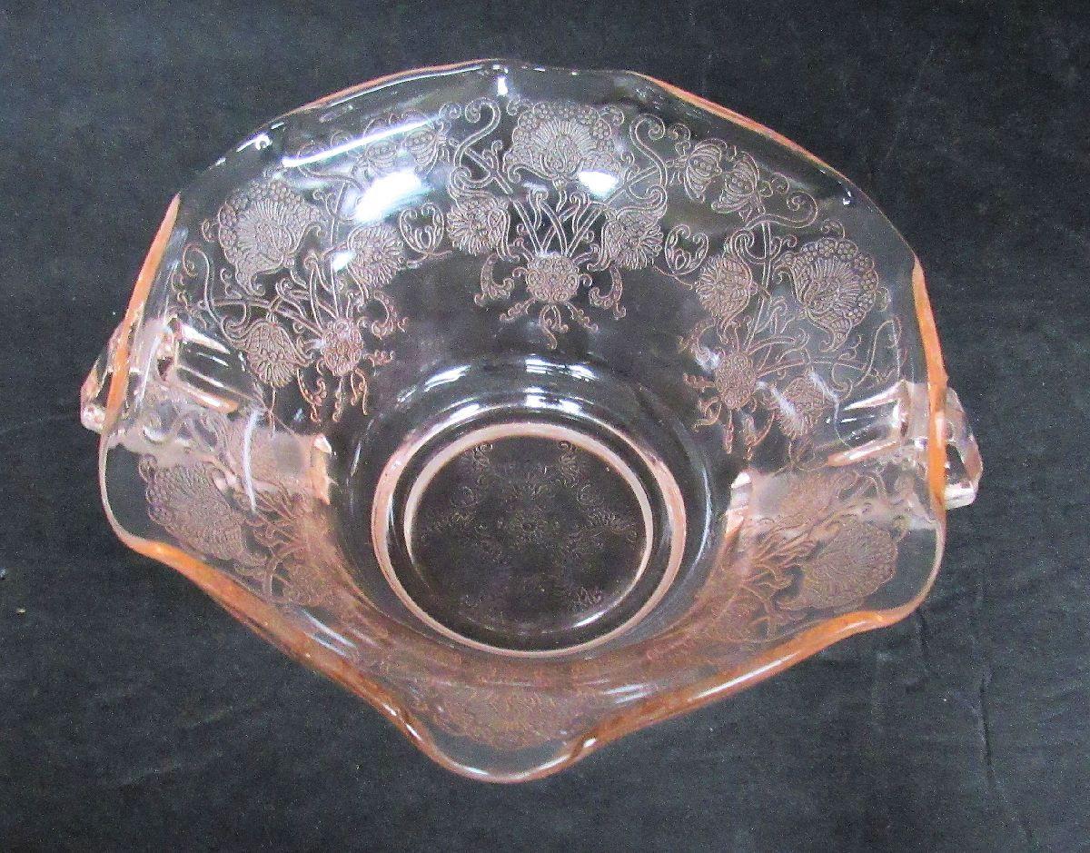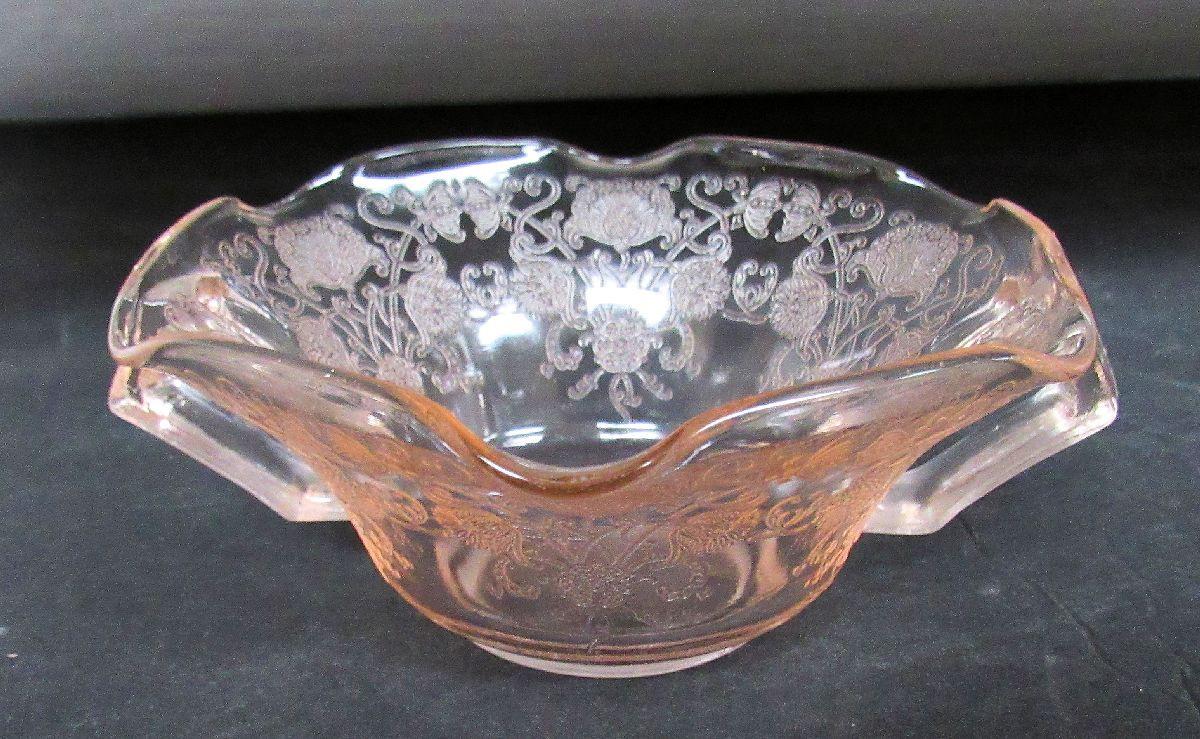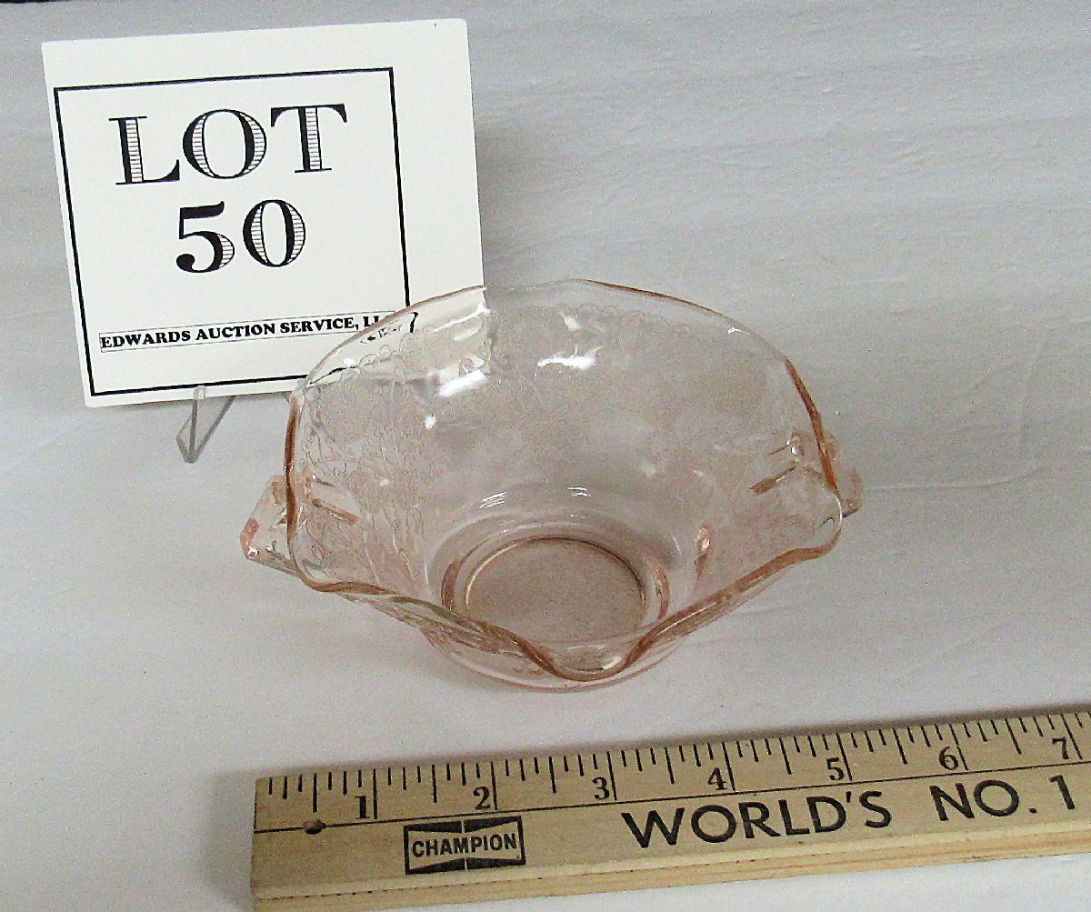 Pink Depression Glass Cream Soup Bowl, Florentine Pattern