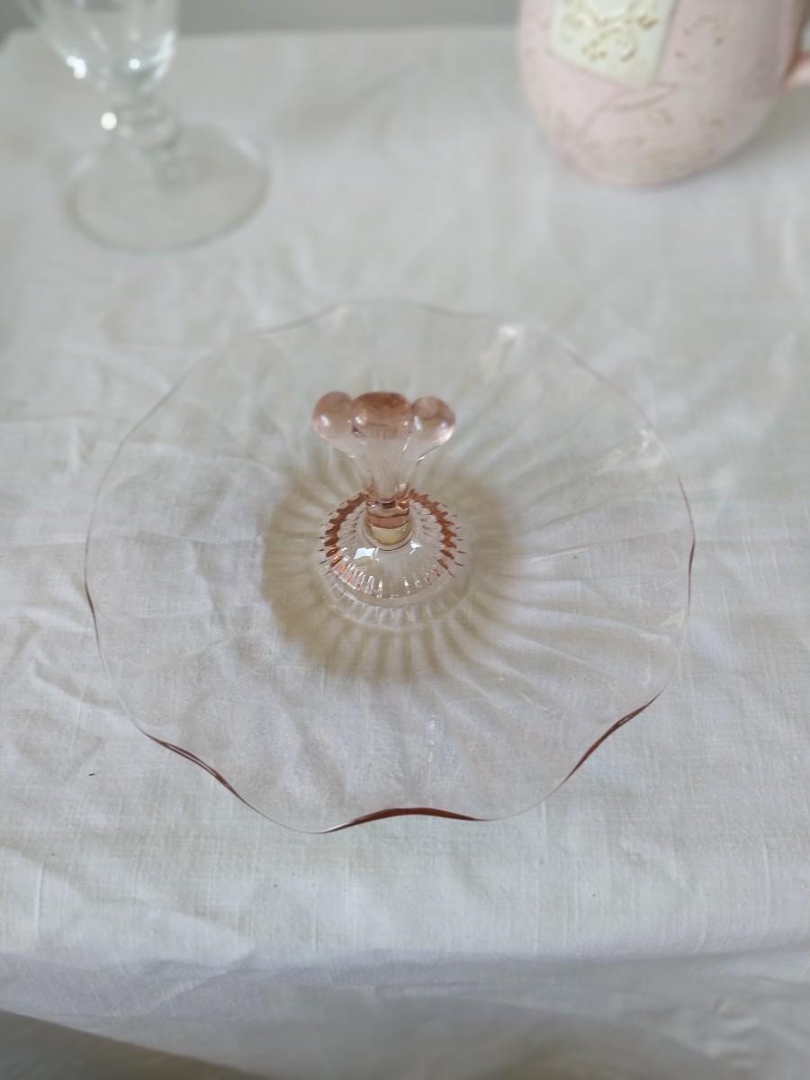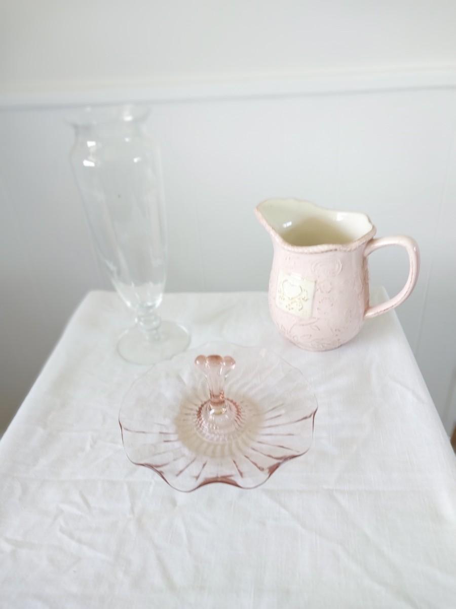 PINK DEPRESSION GLASS DISH--ETCHED GLASS VASE
