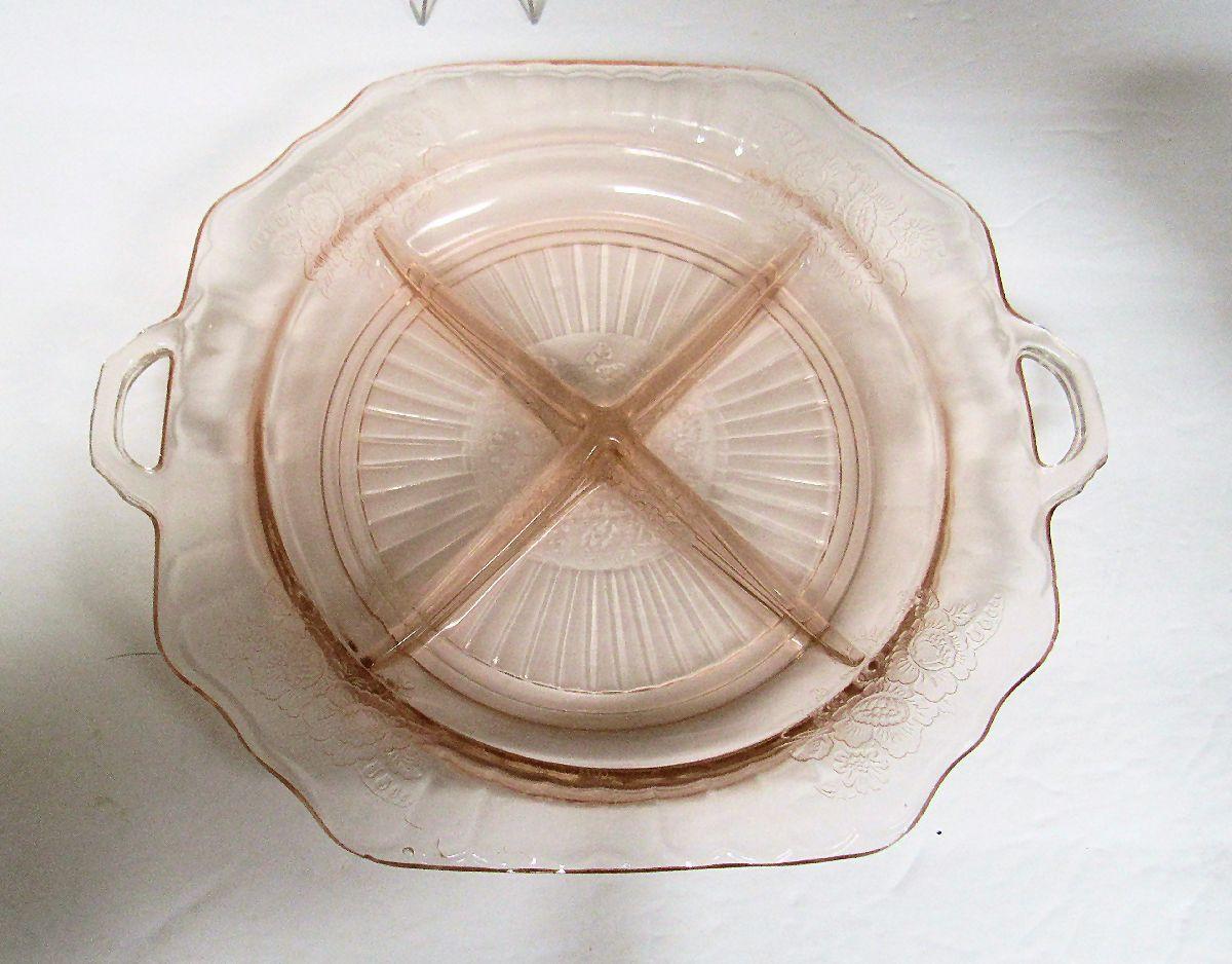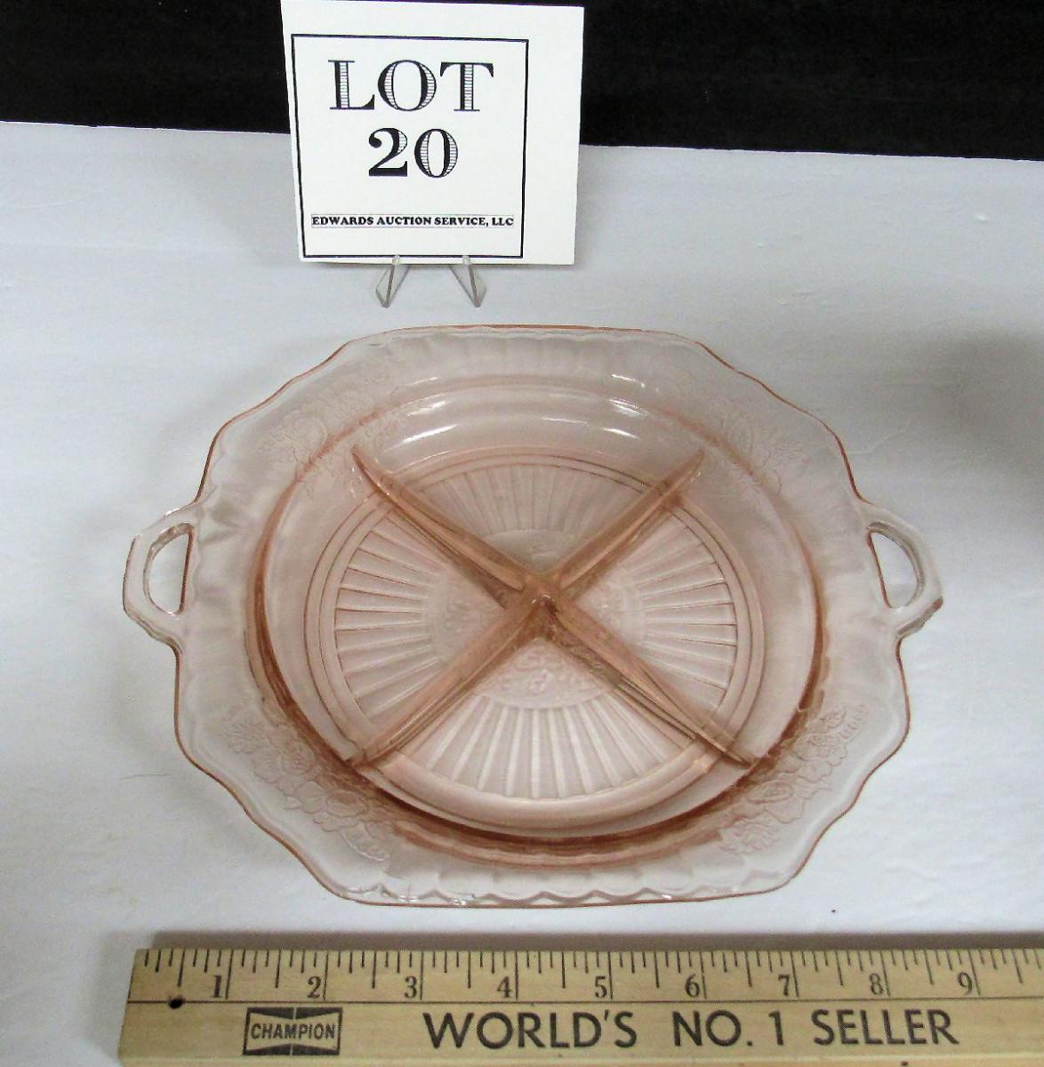 Pink Depression Glass Divided Relish Dish, Mayfair Pattern