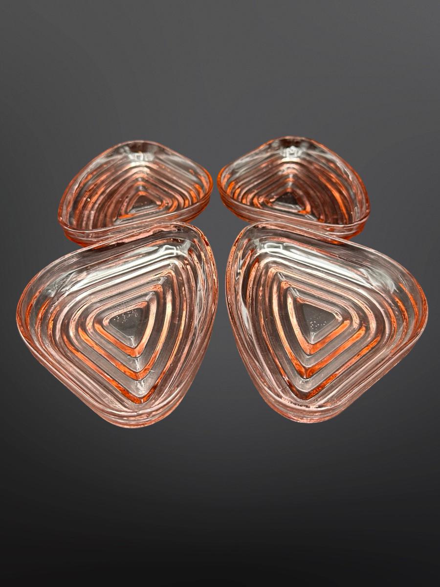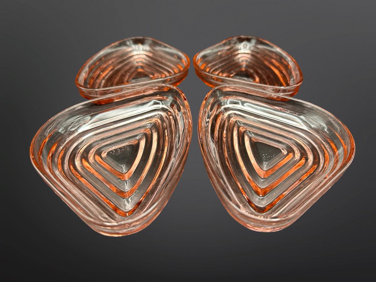 Set of four Pink Depression Glass Manhattan Relish Inserts.