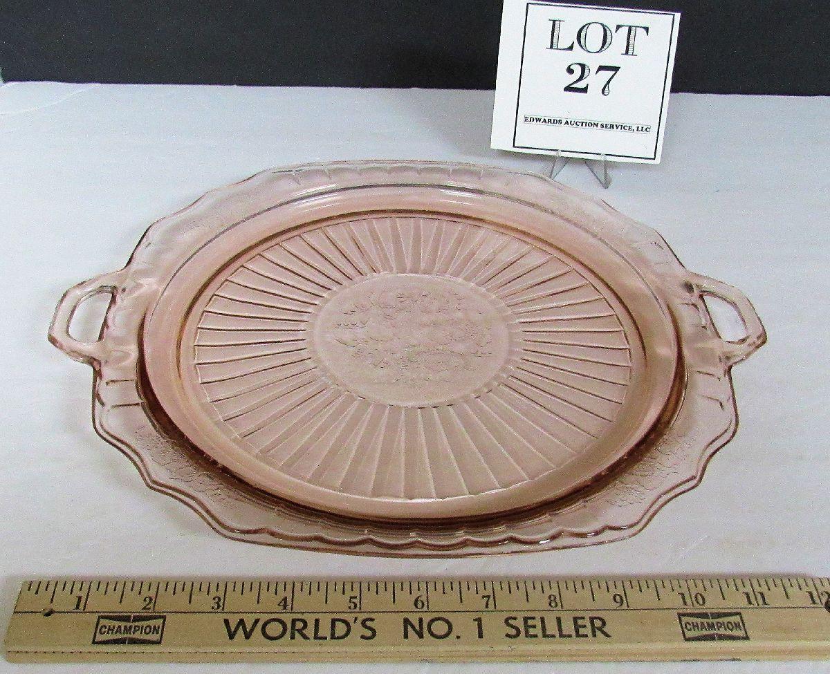 Pink Depression Glass, Mayfair Handled Serving Tray