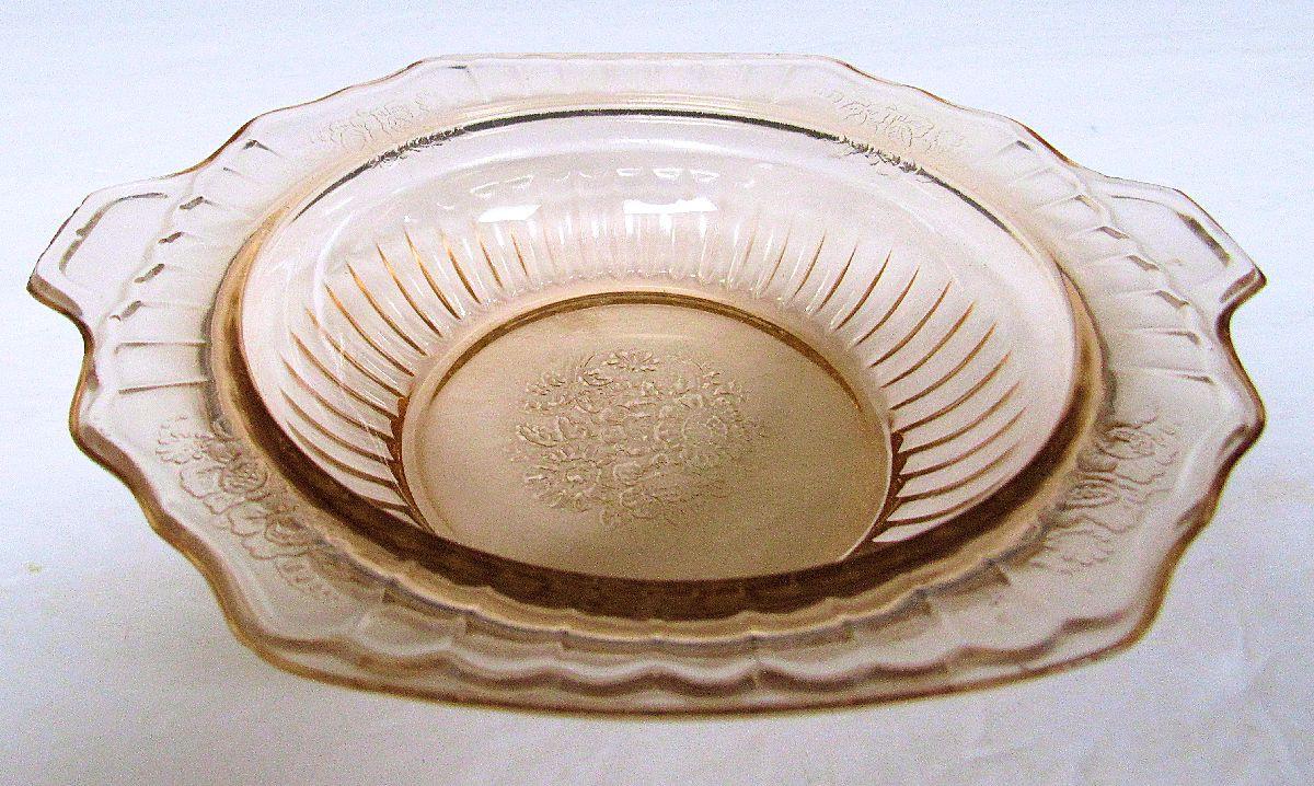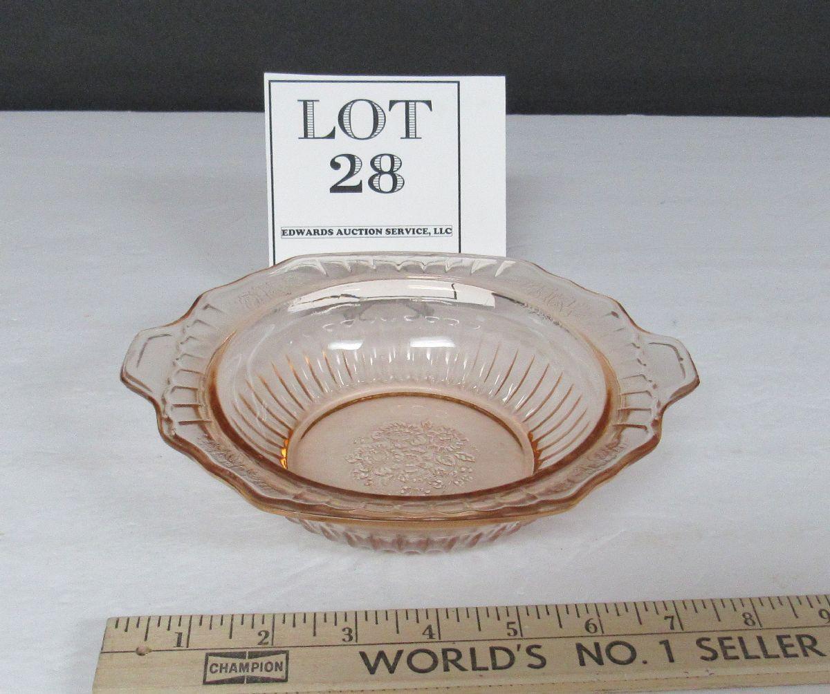 Pink Depression Glass, Mayfair Handled 7" Bowl