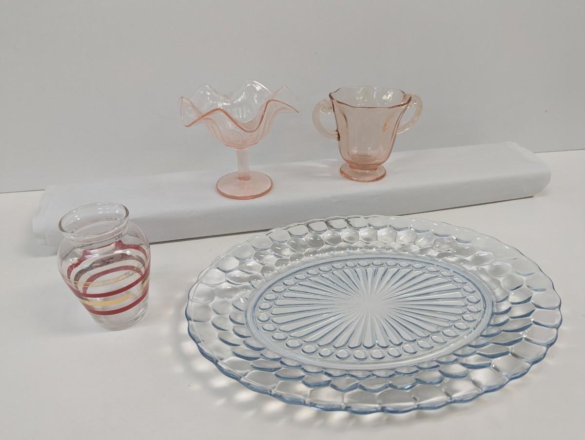 Pink Depression Glass - Vintage Blue Bubble Depression Glass Plate