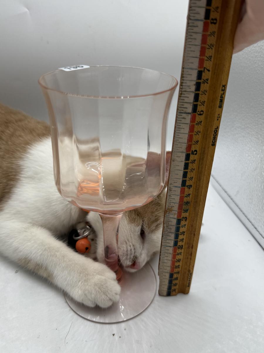 Pink depression glass/wine