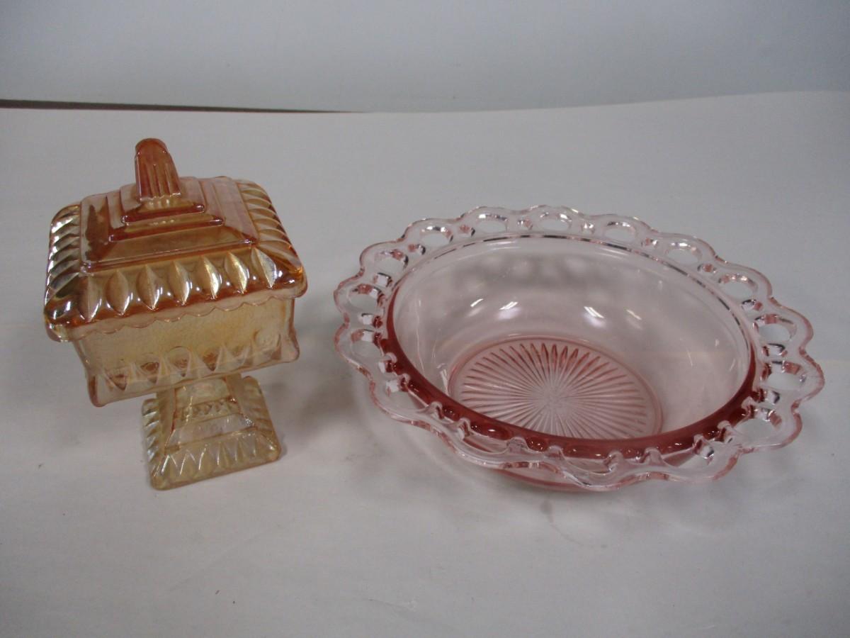 Pink Depression Ribbed Bowl Jeanette Compote With Lid Wedding Candy Dish