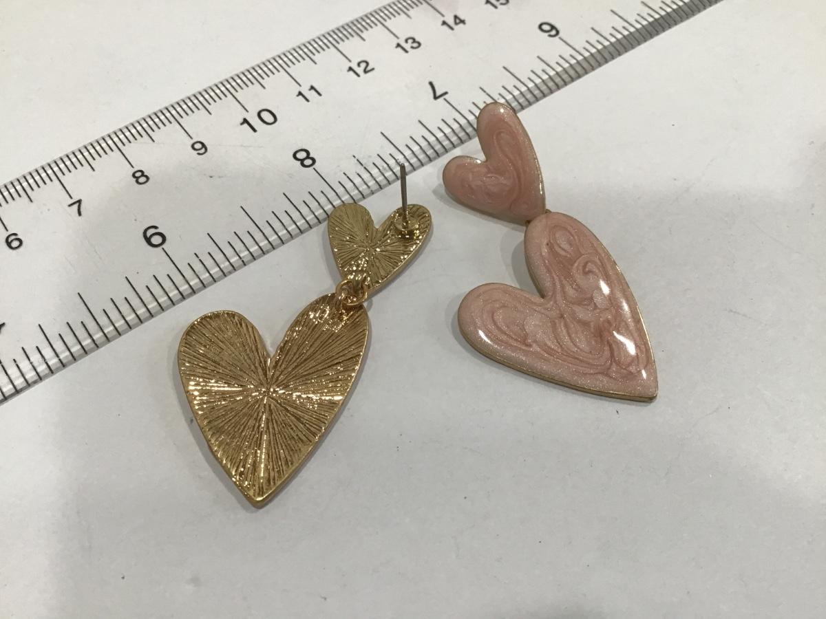 Pink Enamel Double Heart Earrings