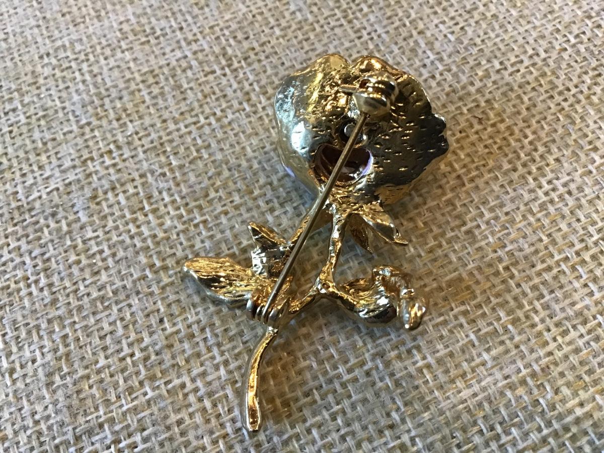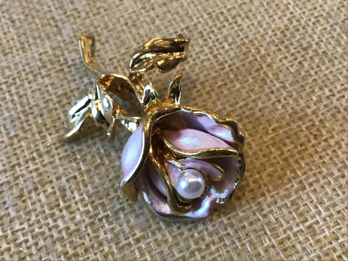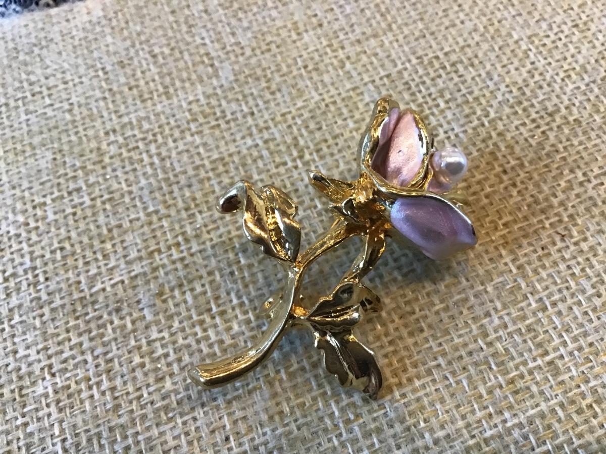 Pink Enamel Pearl Style Rose Brooch