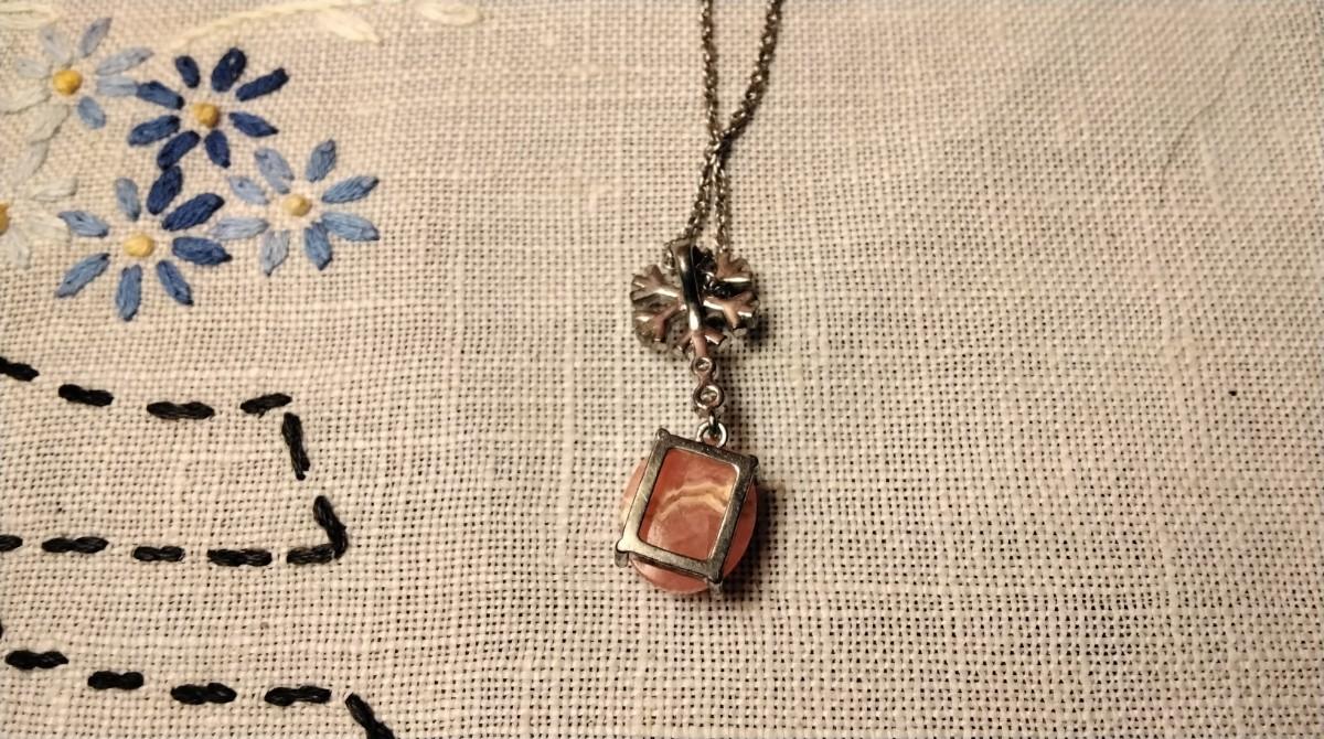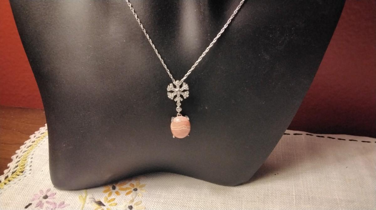16" 925 Natural Rhodochrosite And Diamond Necklace