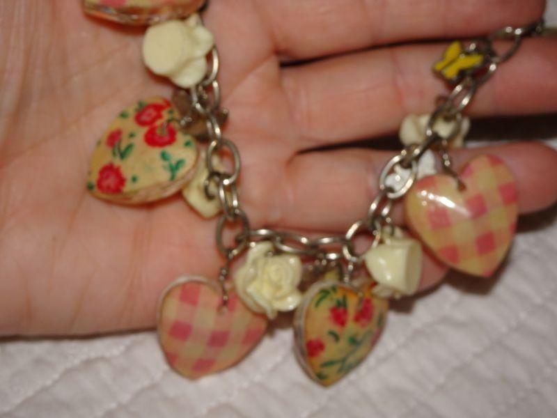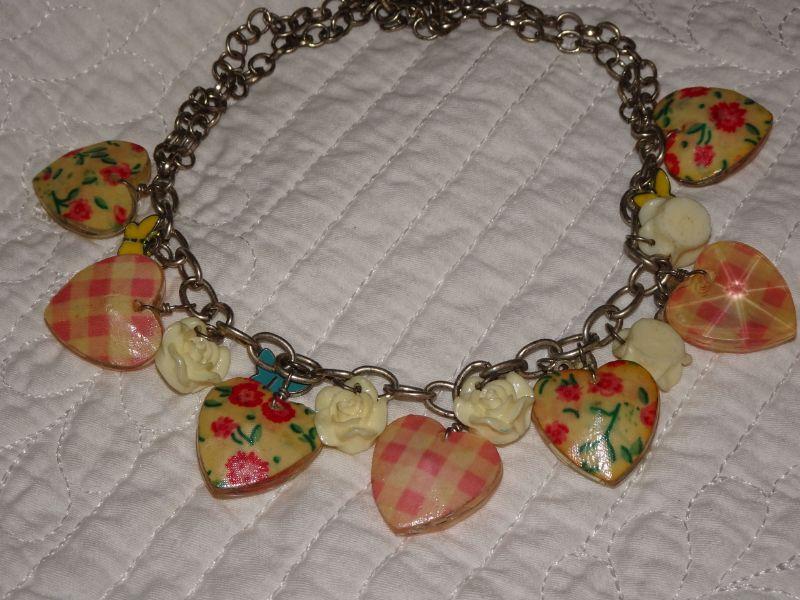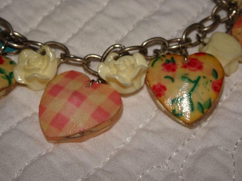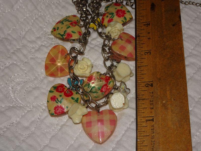 Pink & Floral Silver Tone Heart Necklace, Pastel Pink, Carved Roses