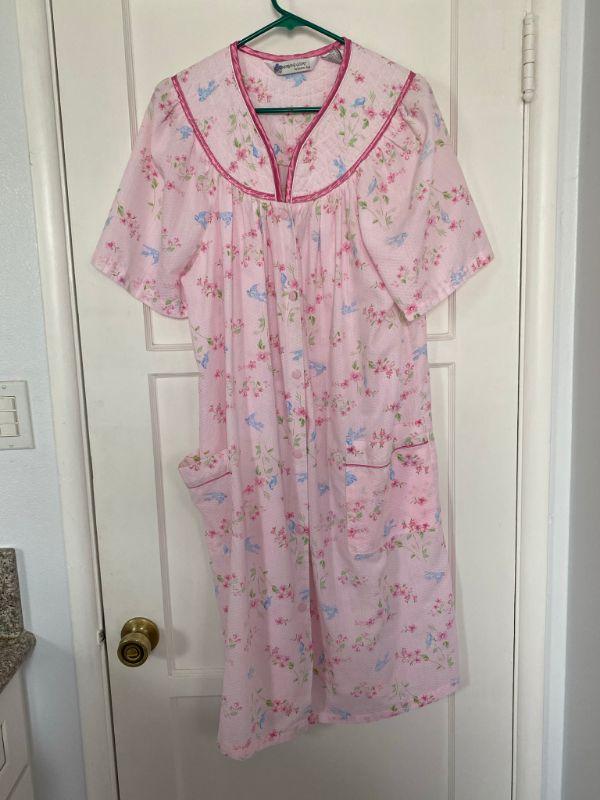 Pink Floral Snap Front House Coat Size XL YD#019-0055
