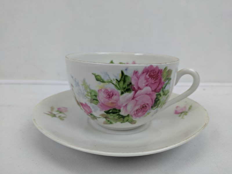 Pink Flower Tea Cup & Saucer, Made In Germany
