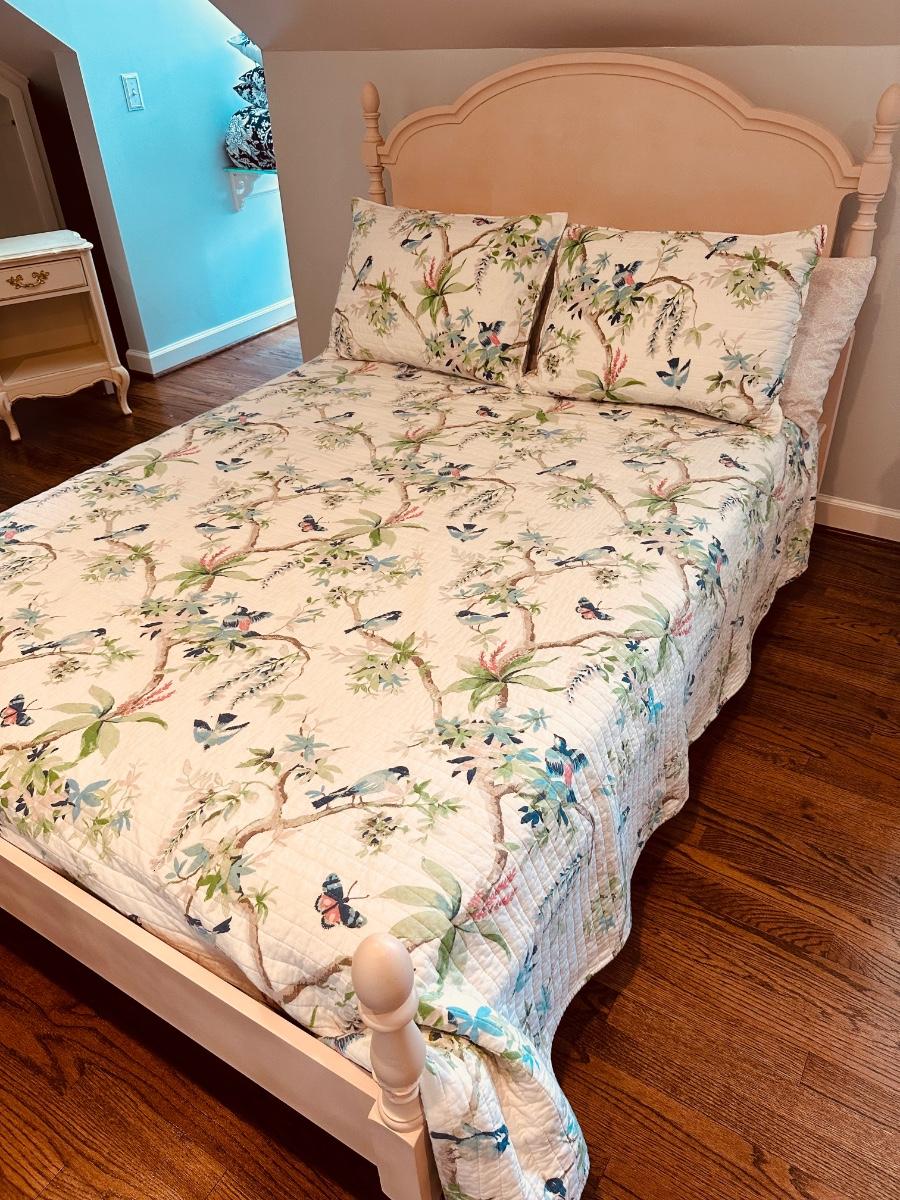 PINK FULL SIZE VINTAGE BED WITH BEDDING