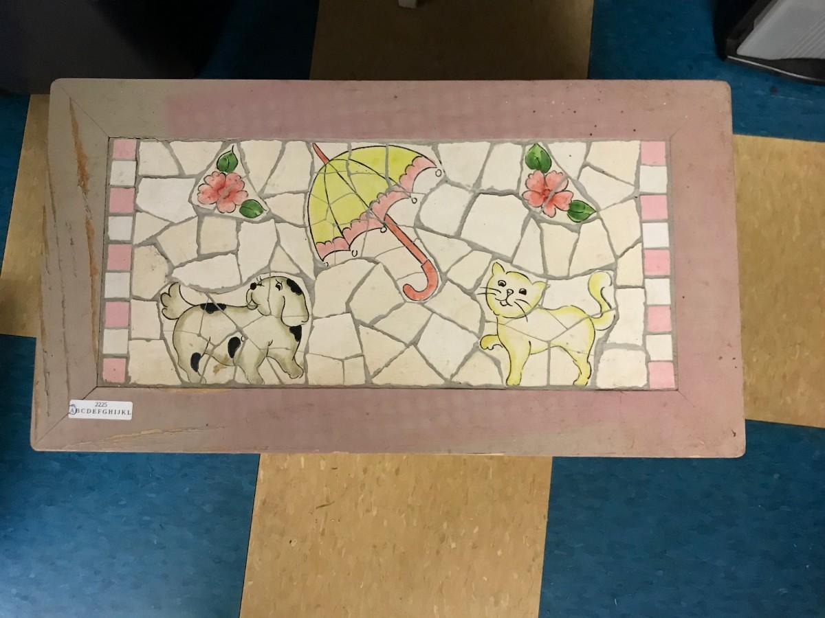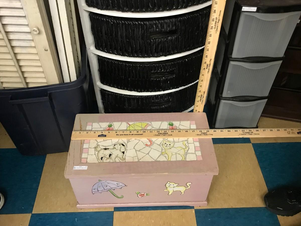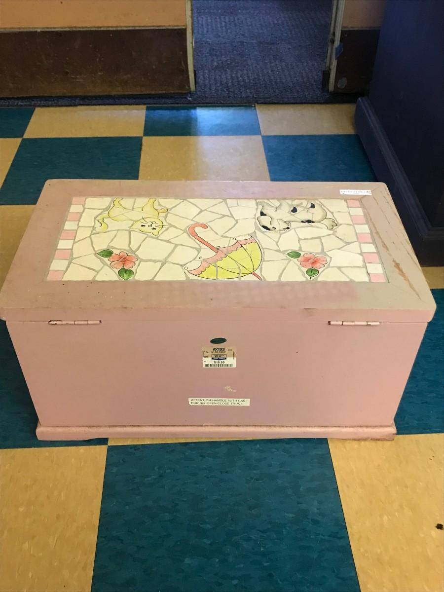 wood box storage: pink, functional, wooden storage box with mosaic, hinged & hydraulic lid, hand painted;