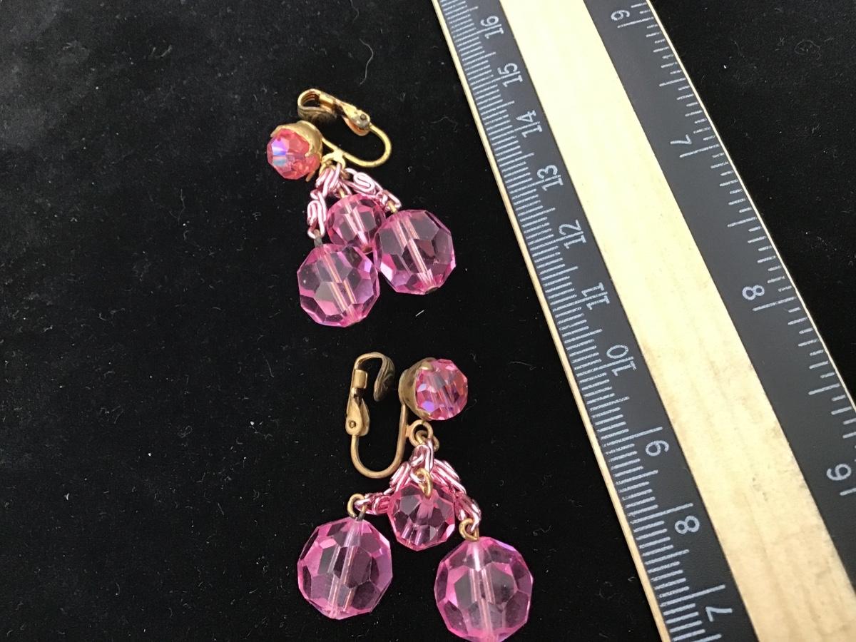 Pink Glass Clip on Earrings Vintage