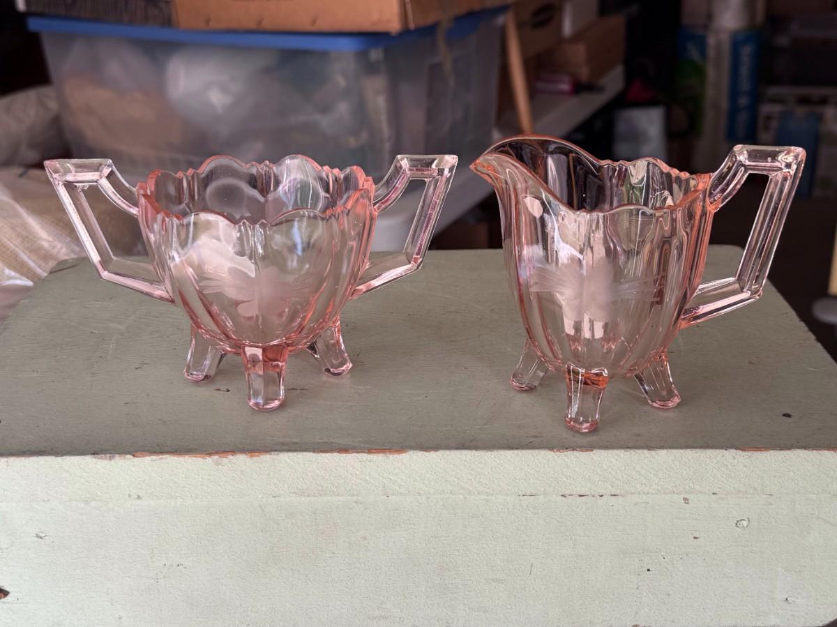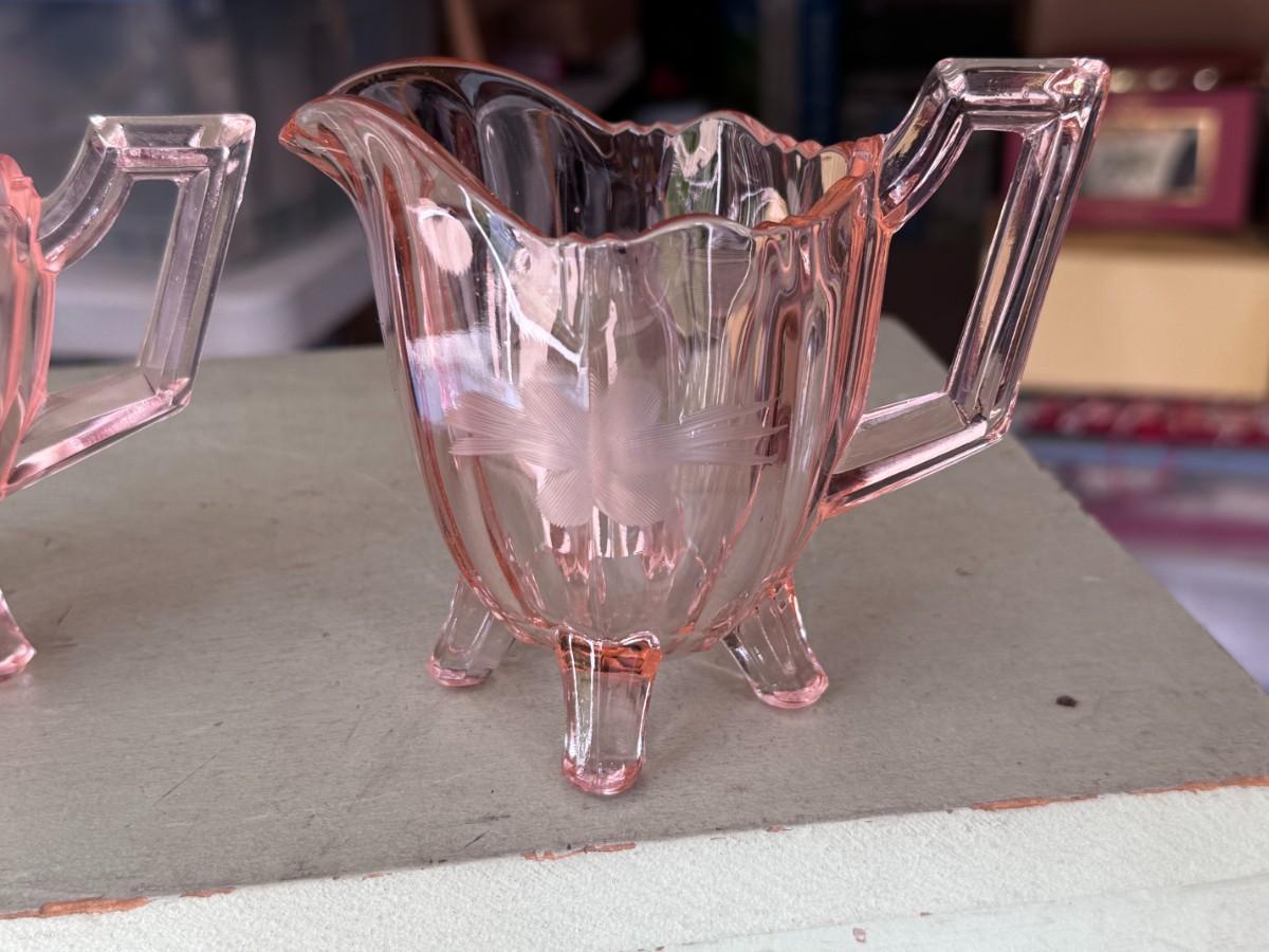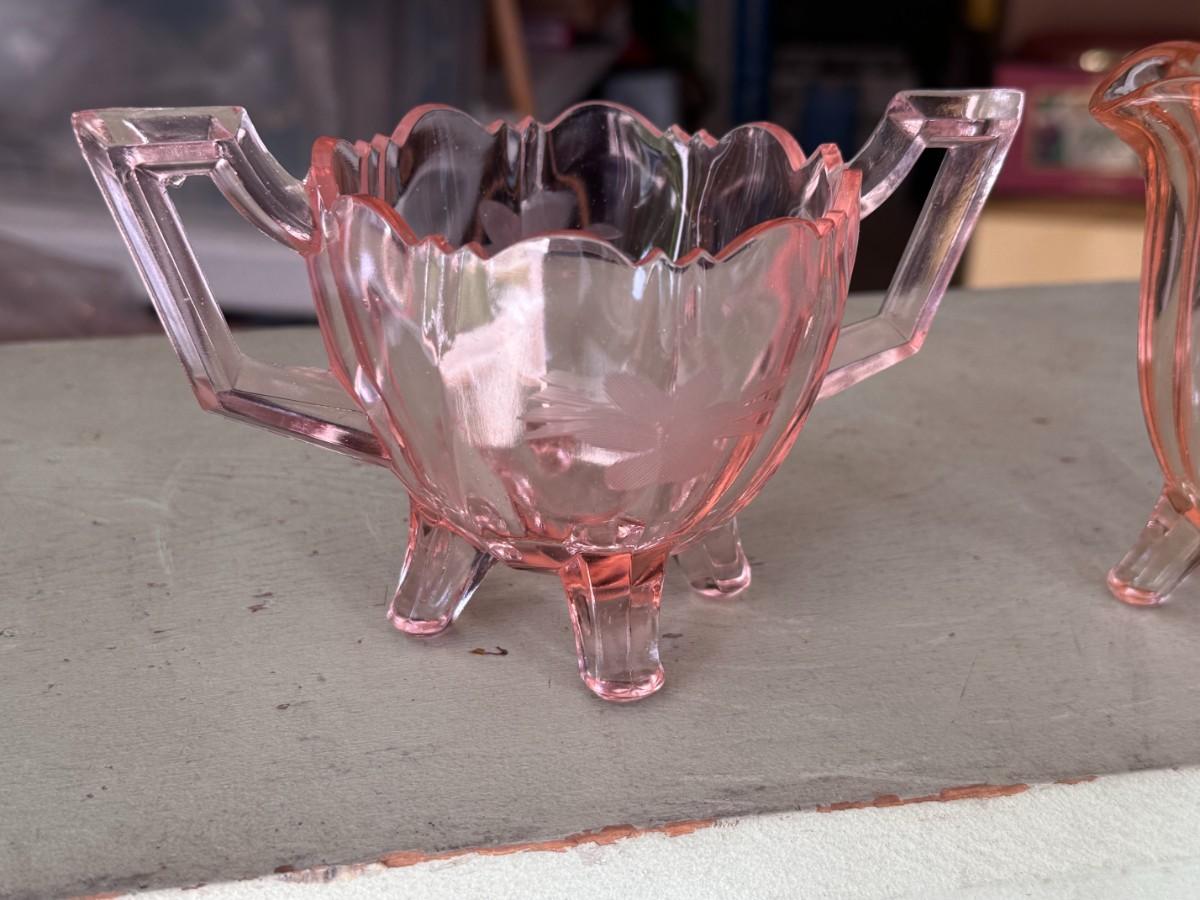 Pink Glass Cream and Sugar Set