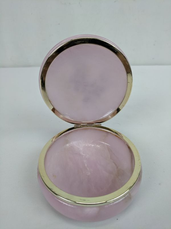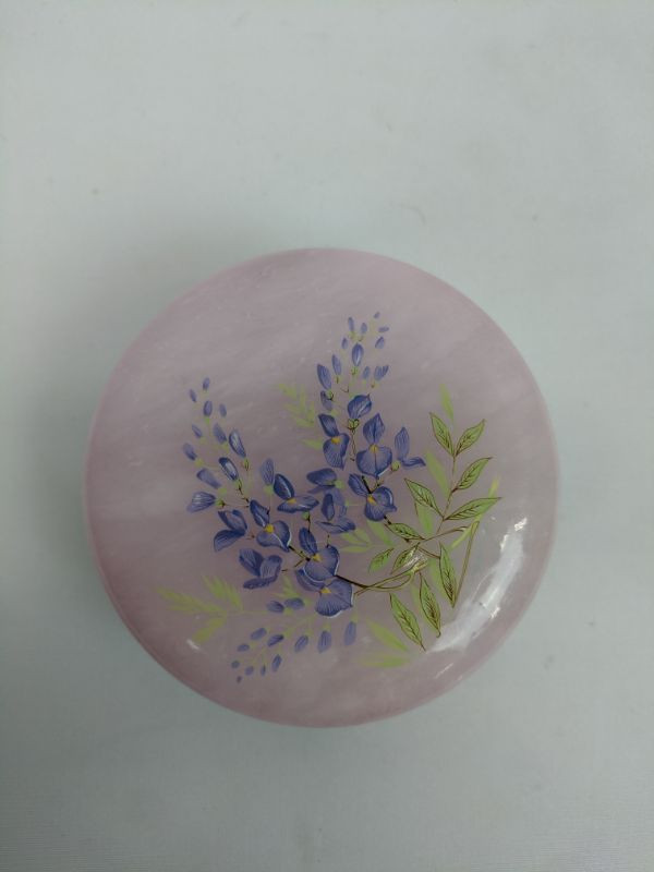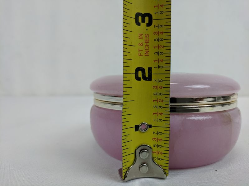 Pink Glass Jewelry Box, WIth Flowers, 4" x 2"