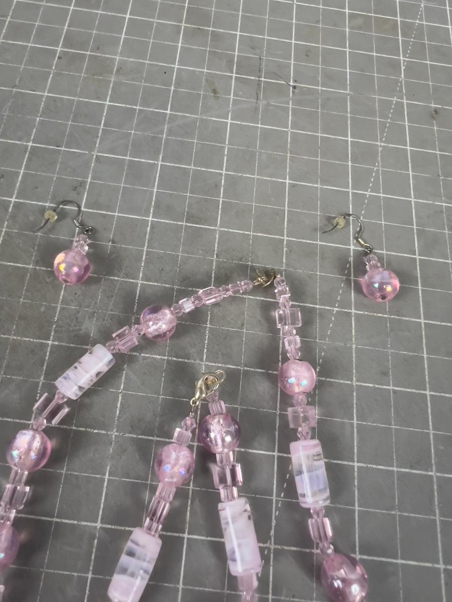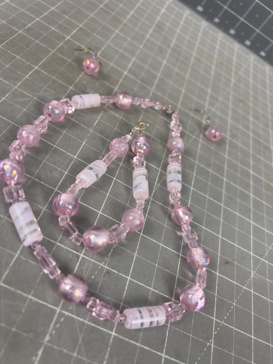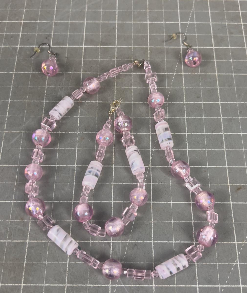 Pink Glass Necklace and Earrings