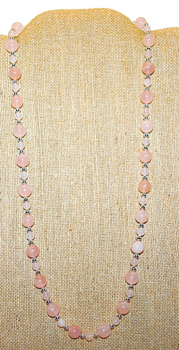 PINK GLOBES NECKLACE with Silver Tone Accents and a Decorative Oval Snap Clasp 24" L