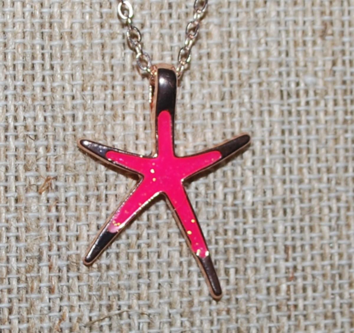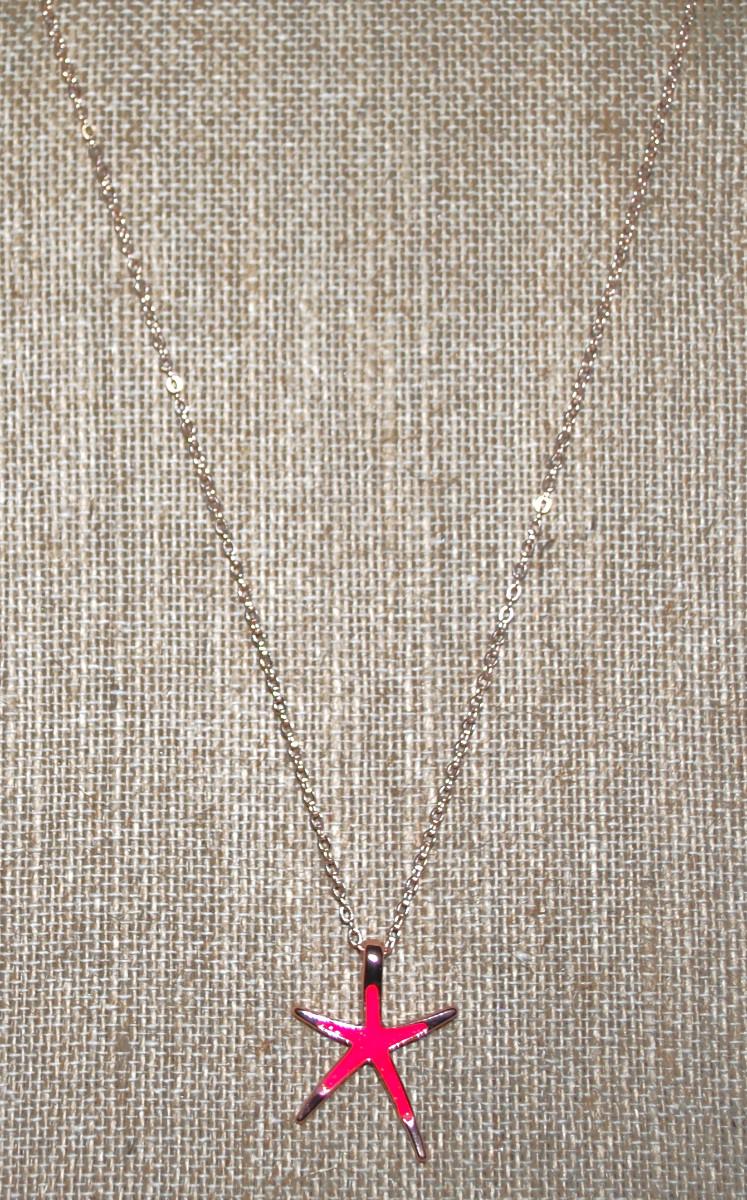 Pink & Gold Color Elongated Starfish PENDANT (1" x ¾") on a Gold Tone Necklace Chain 16" L