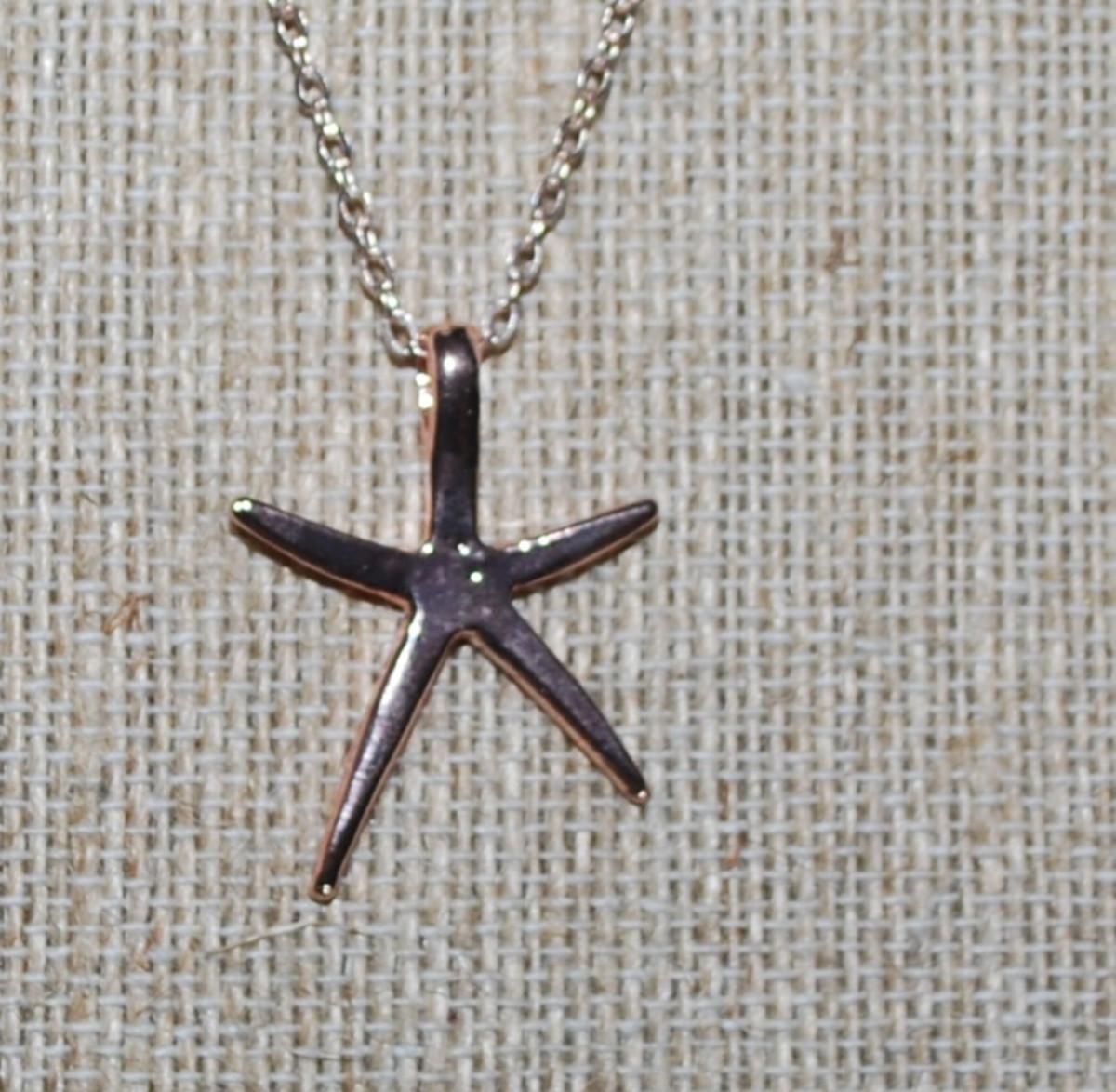 Pink & Gold Color Elongated Starfish PENDANT (1" x ¾") on a Gold Tone Necklace Chain 16" L