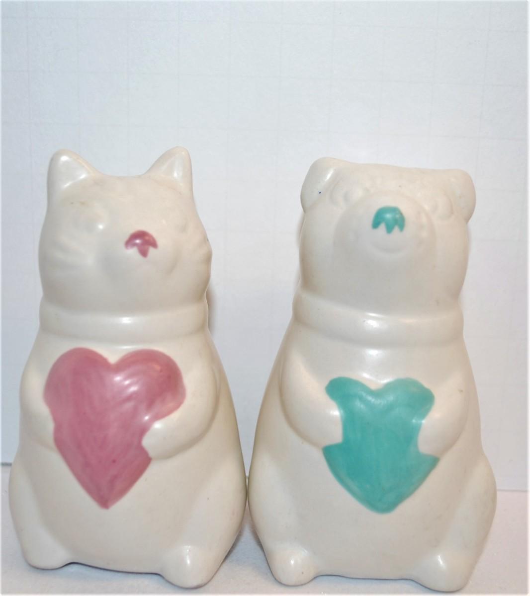 Pink Heart Kitten & Blue Heart Puppy Set 3 3/4"