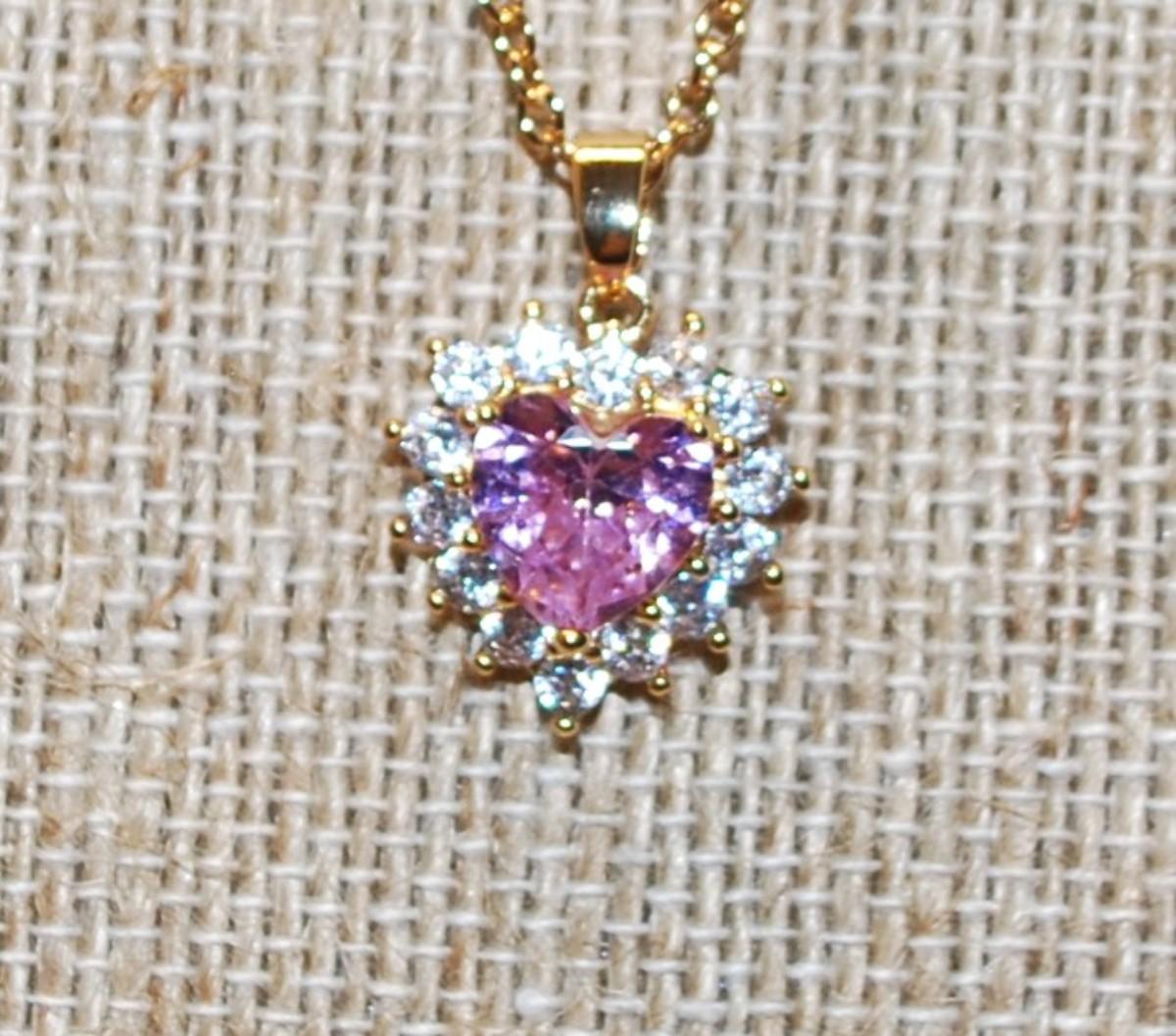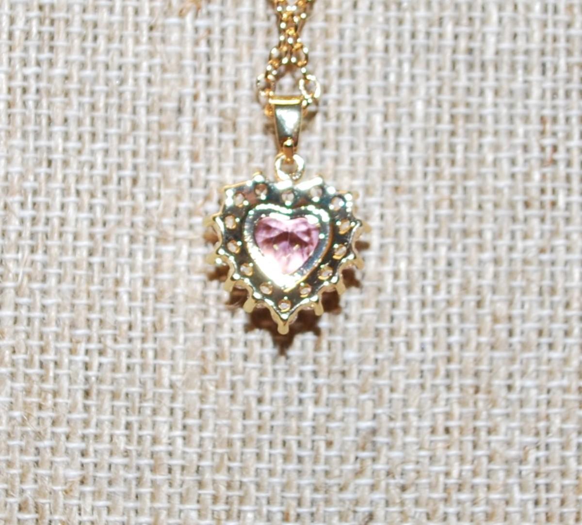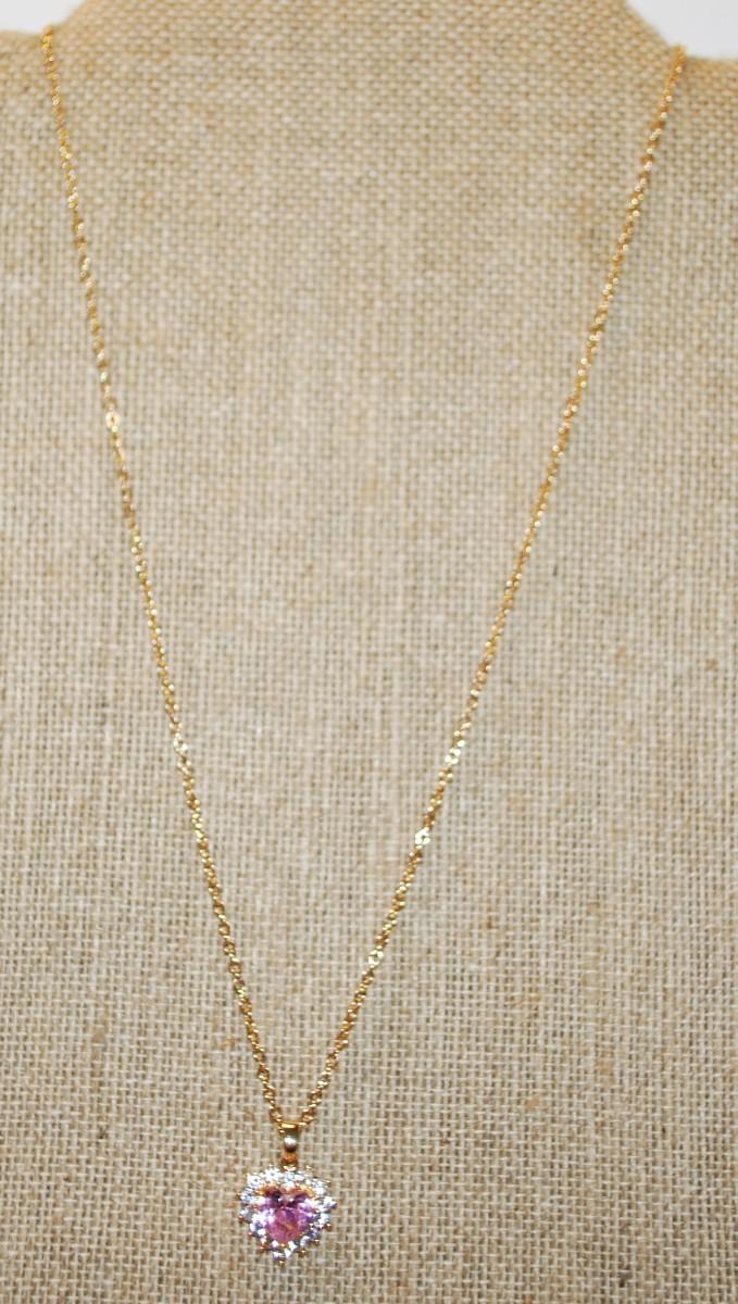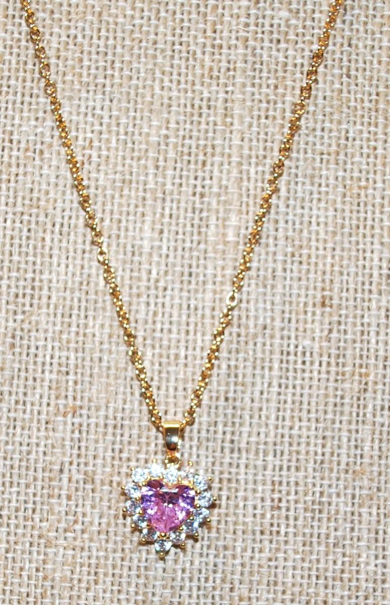 Pink Heart Shaped Stone PENDANT (¾" x½") in a Heart Shaped Setting of Clear Surround Stones Necklace 18" L