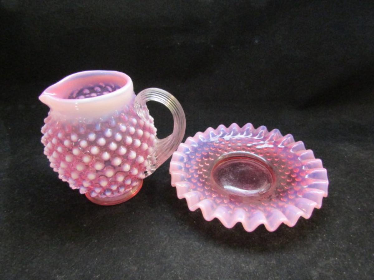 Pink Hobnail Pitcher with Under Plate- Possibly Fenton (#130)