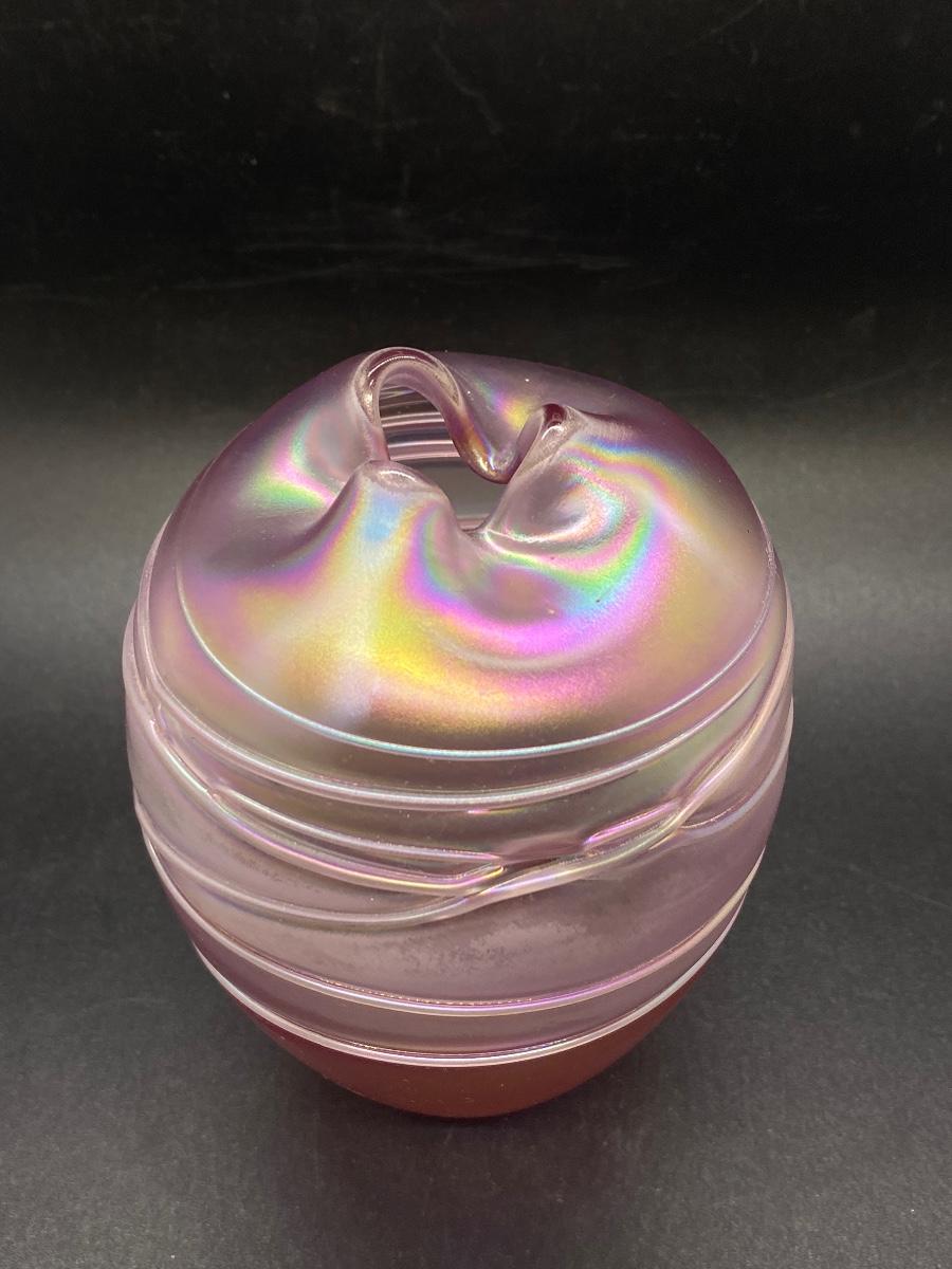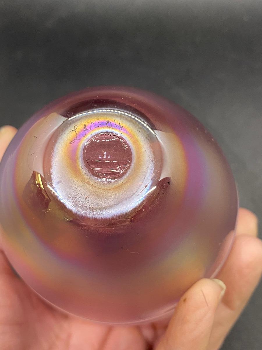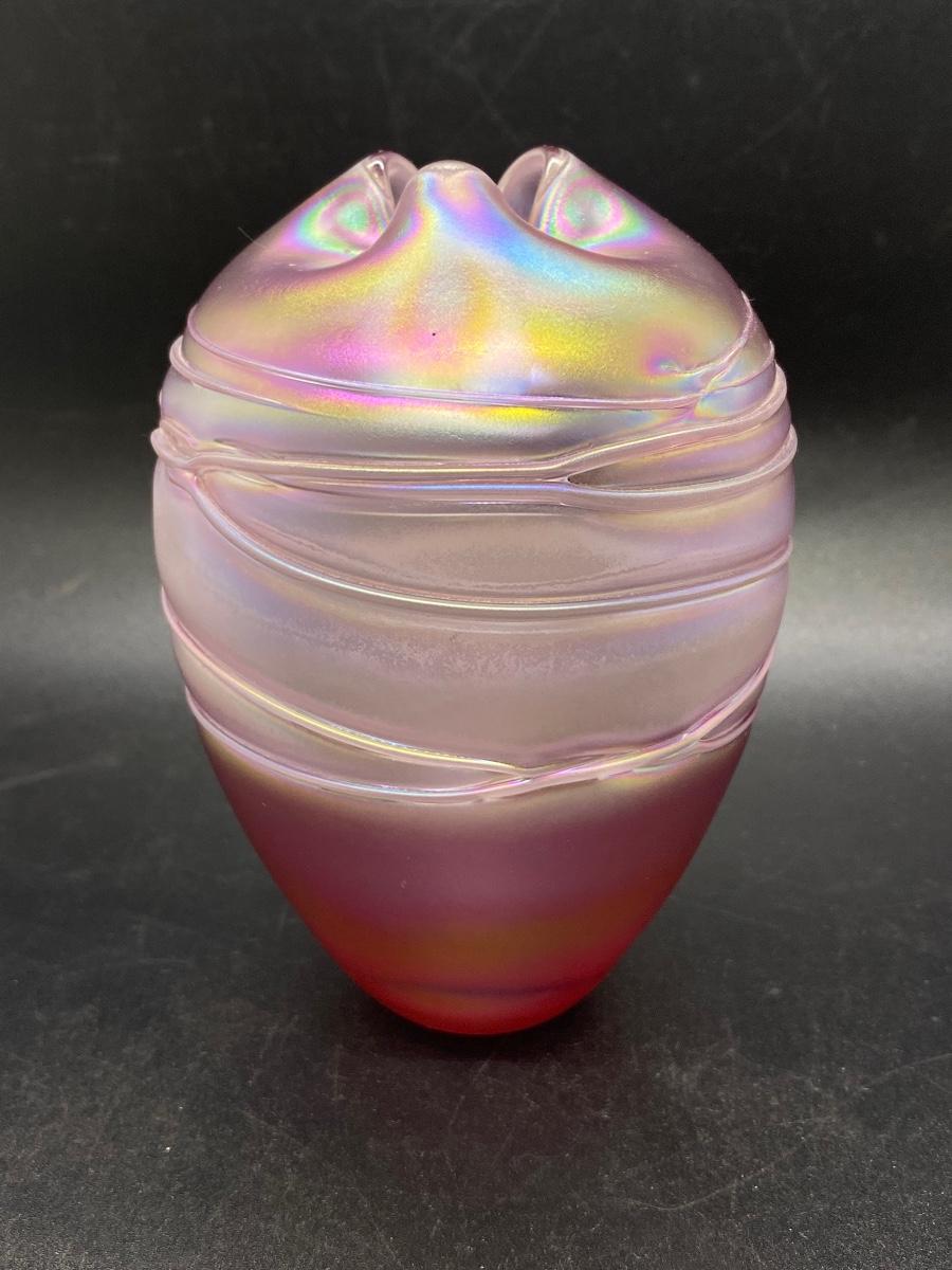 Pink Iridescent Oil Slick Blown Art Glass Vase Paper Weight Levay Studios Signed