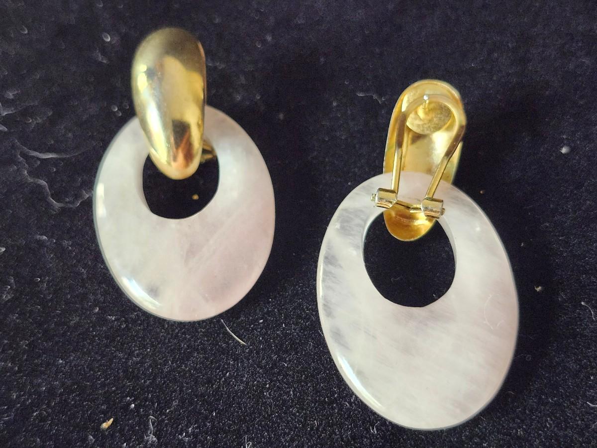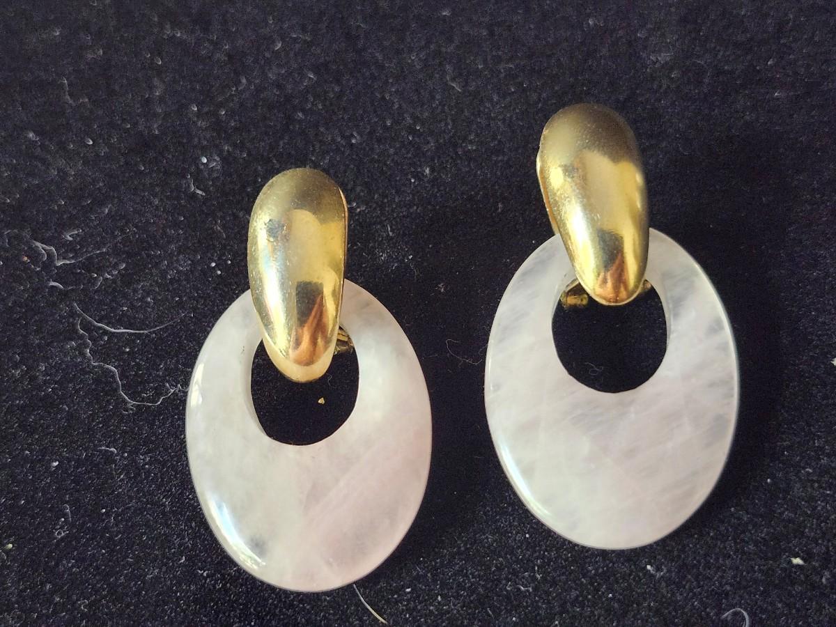 Beautiful soft pink jadeite stones, the gold tone posts can acept other stones for variety.