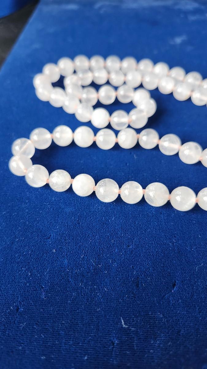 Hand knotted, very lovely soft pink color. 24" long. Lovely Condition.