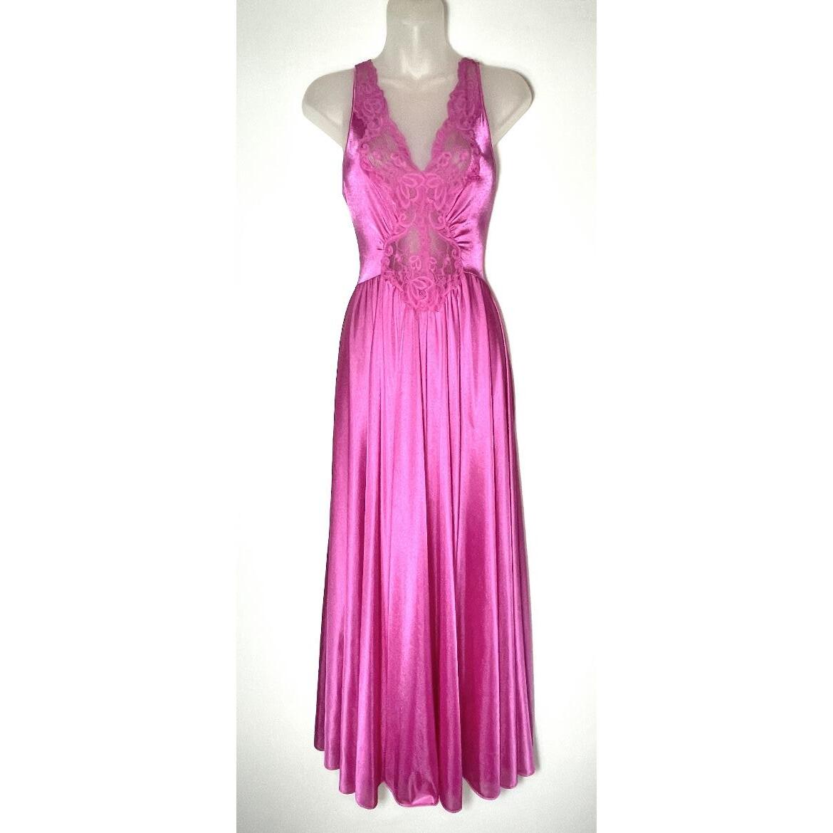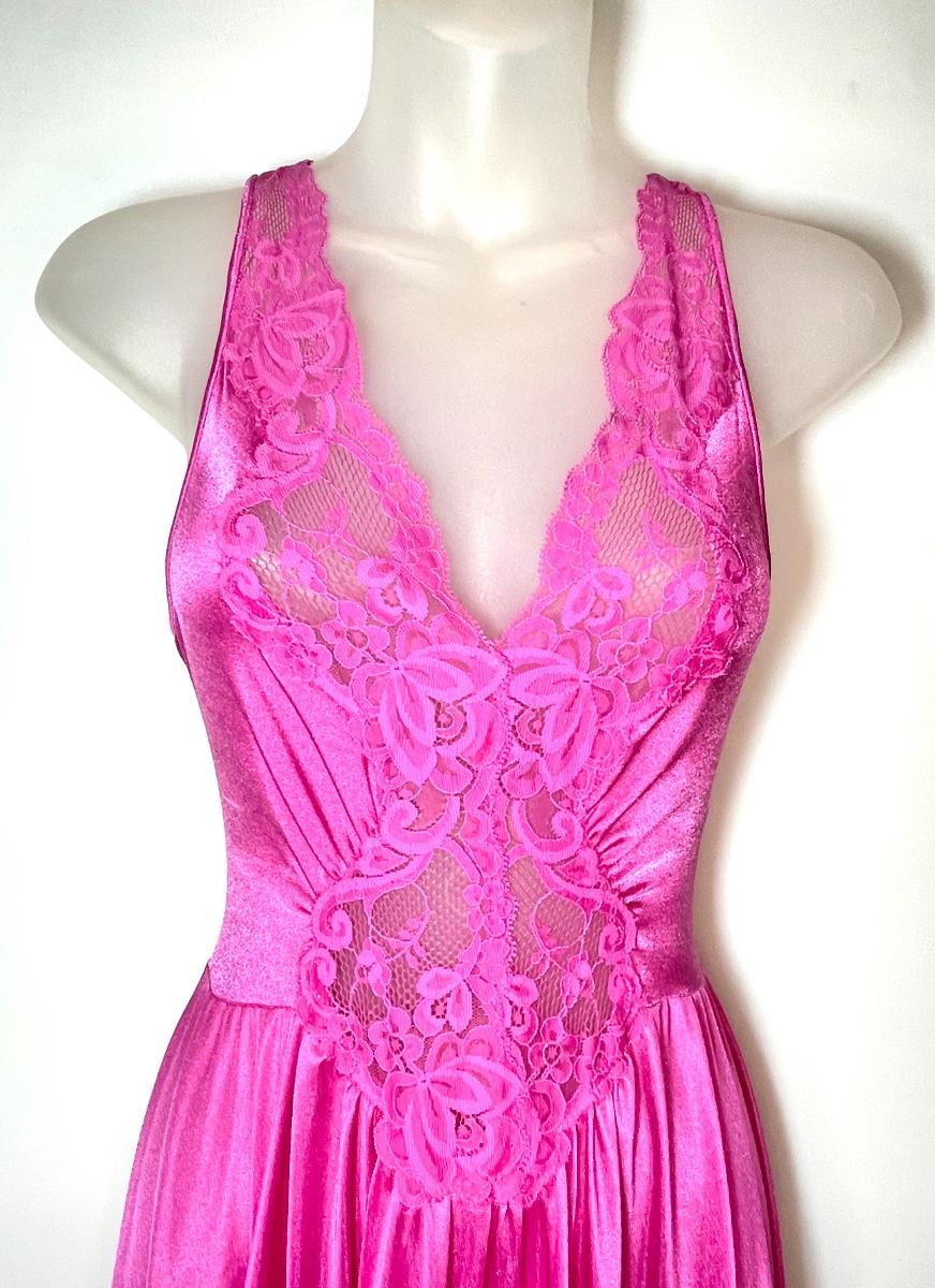 PINK LACE SATIN NIGHTGOWN - WOMEN’S SMALL