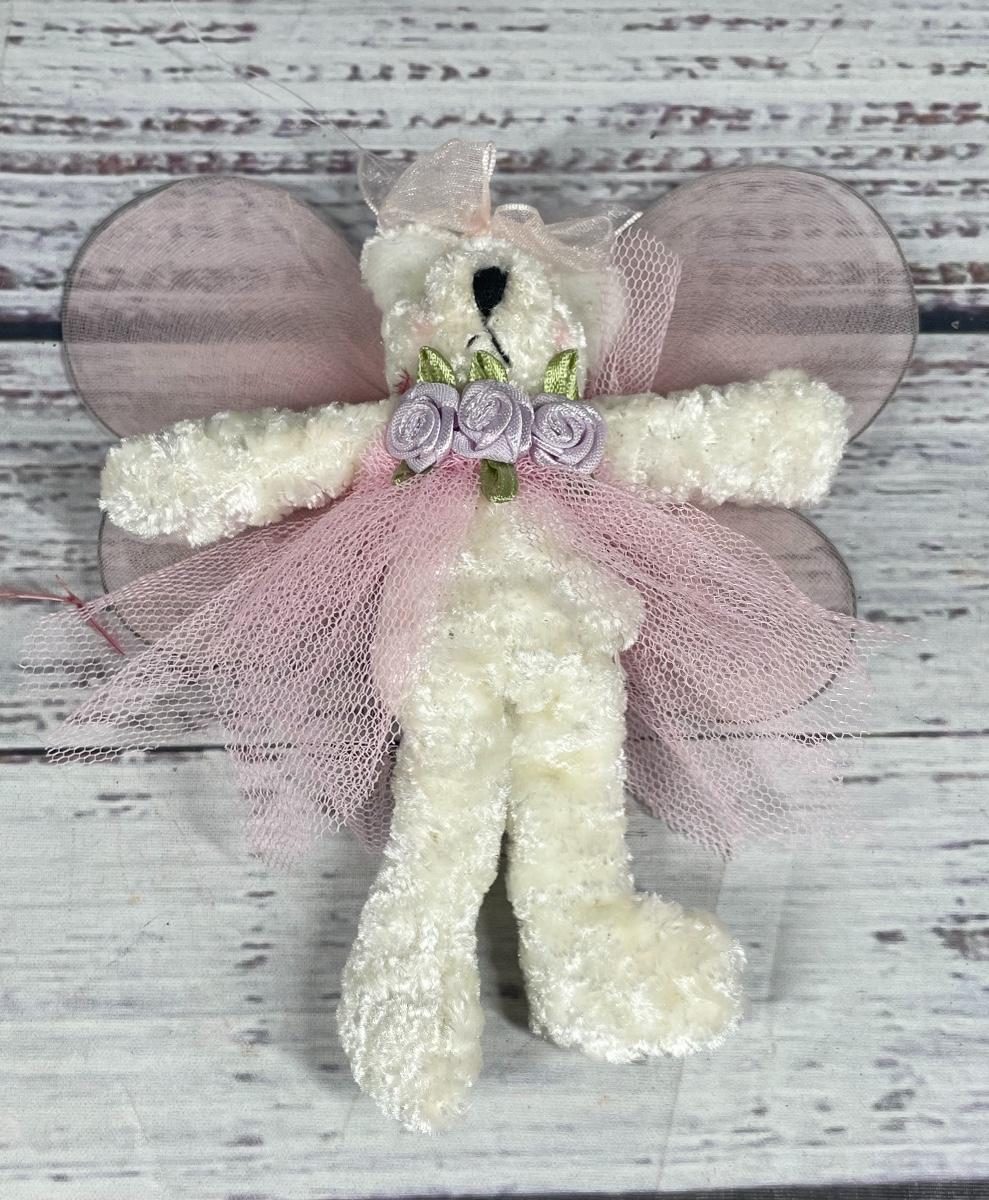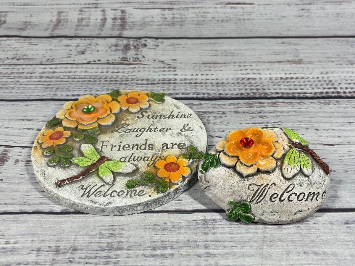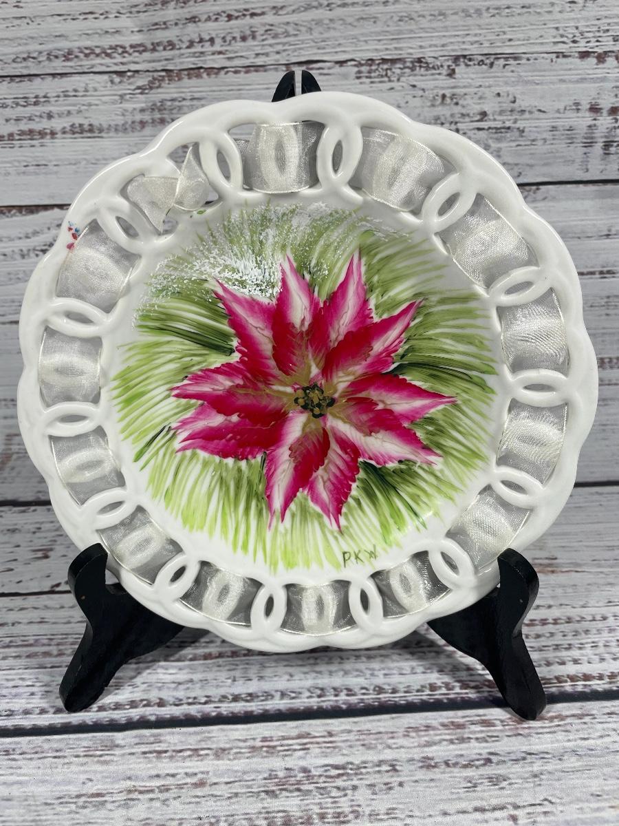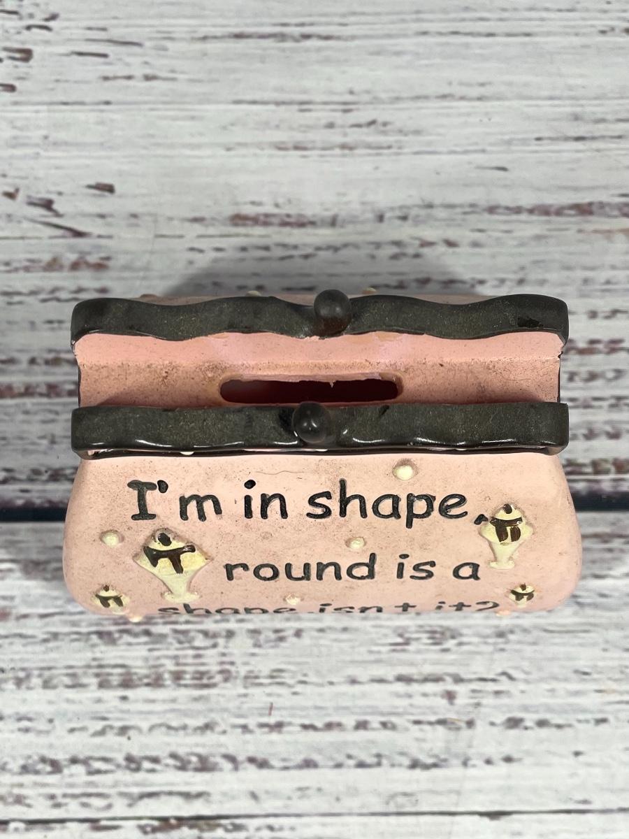This set of items contain: a pink vase, pink piggy bank, ceramic bowl with a rabbit design, two tiny stuffed animals, a cloth piece, two plates, and two decorations with sayings. All items are in a decent condition. Some are discolored and dusty due to years of ownership.