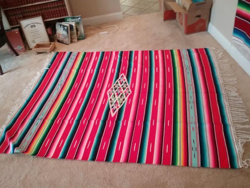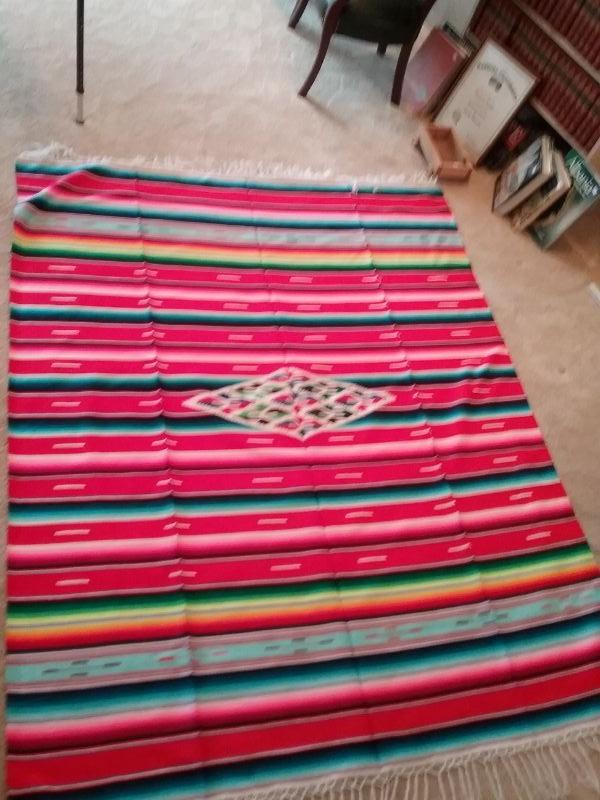 Pink & multi color Mexican fringed blanket