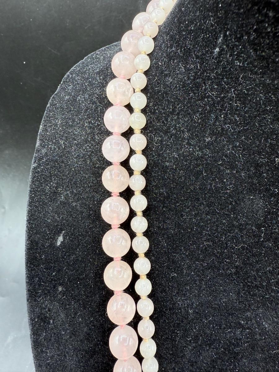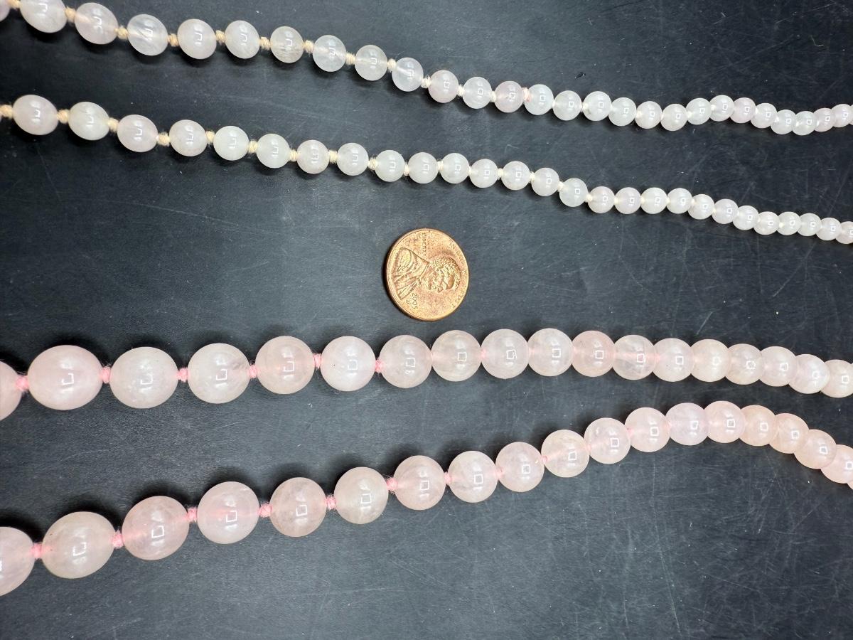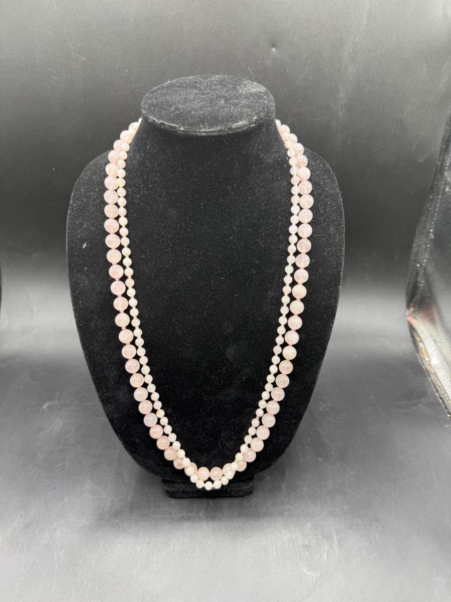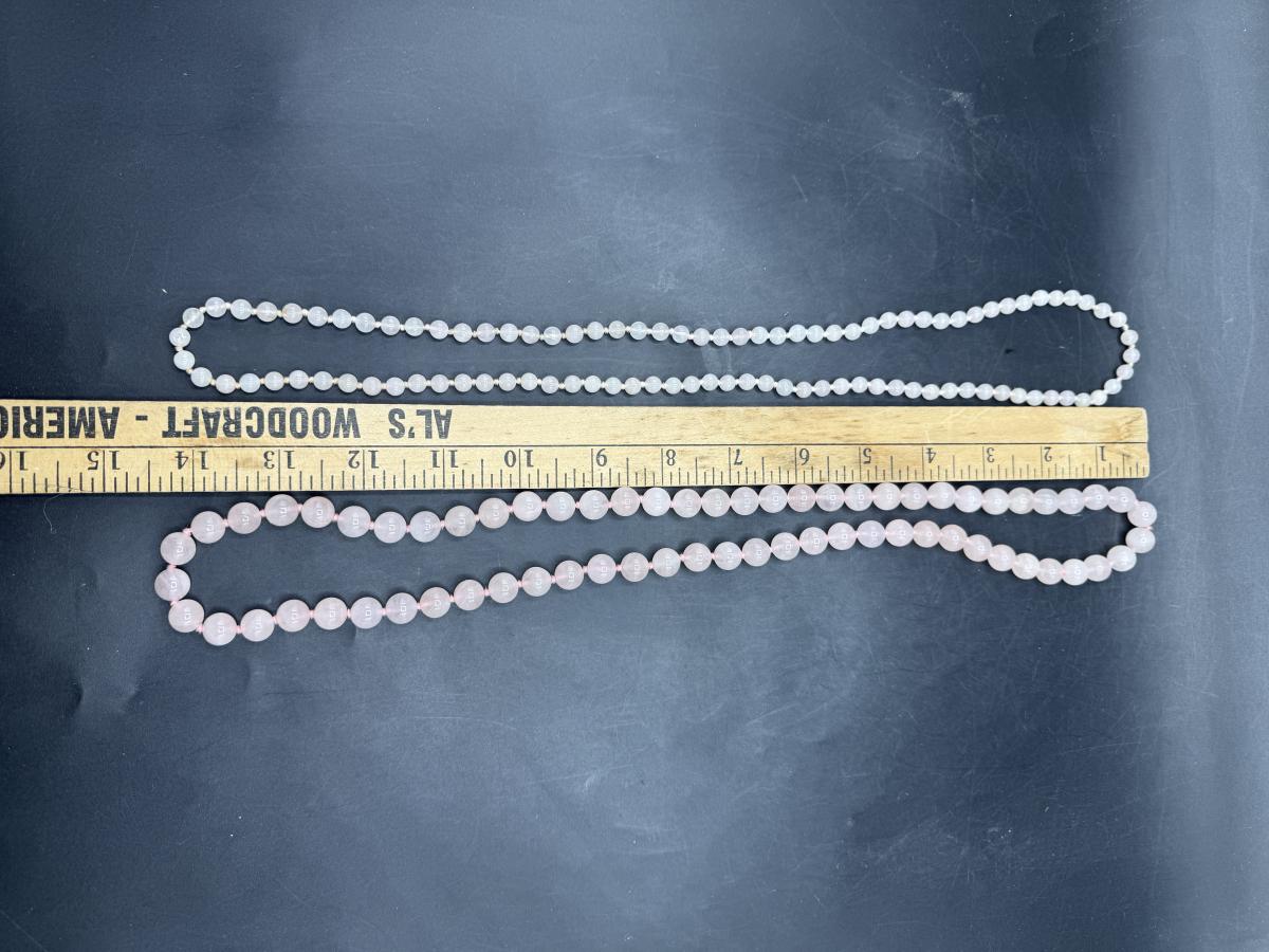 Both necklaces are the same length (approx. 28"), one has a small bead and the other has a larger bead. Both in good condition.