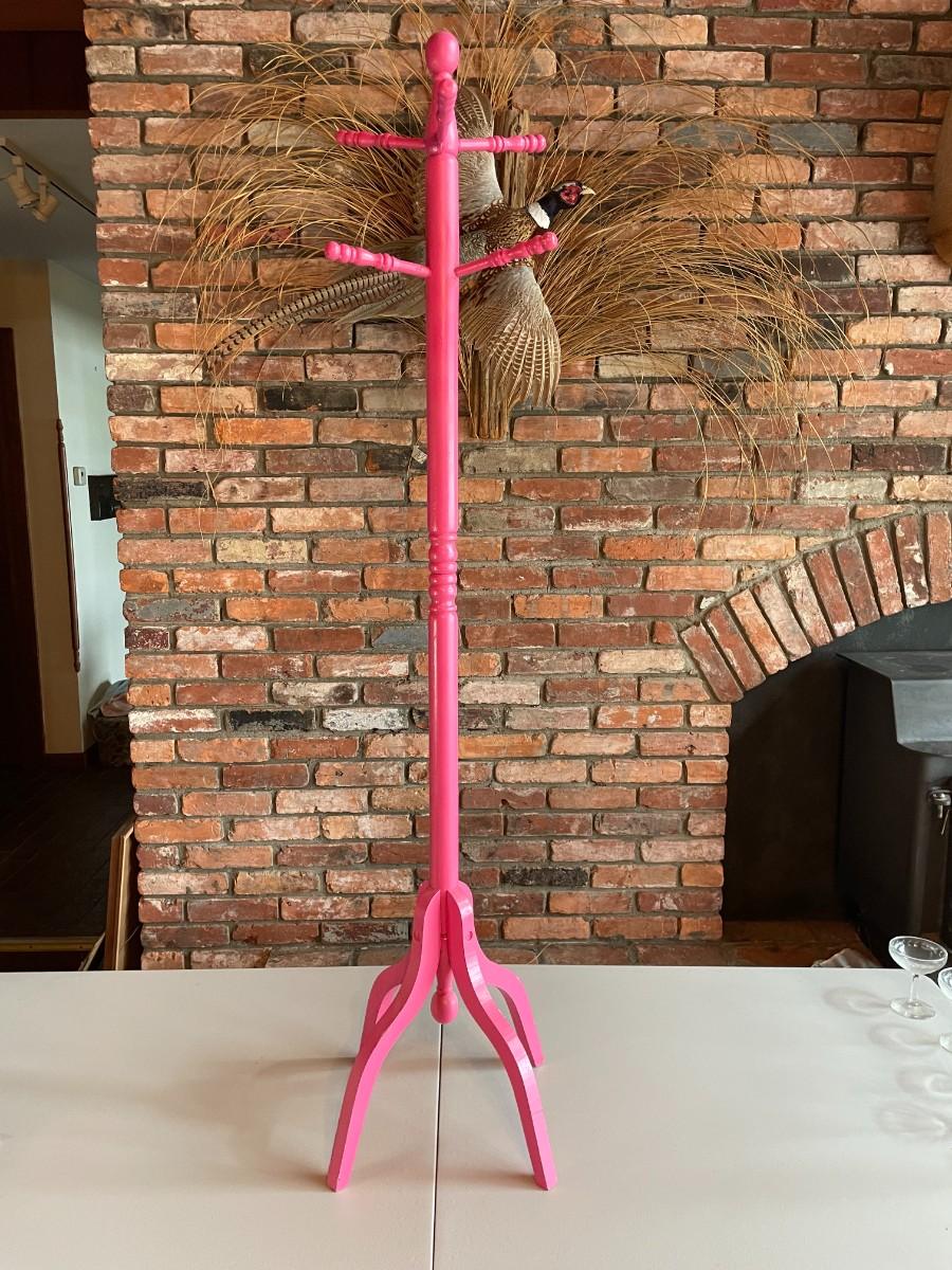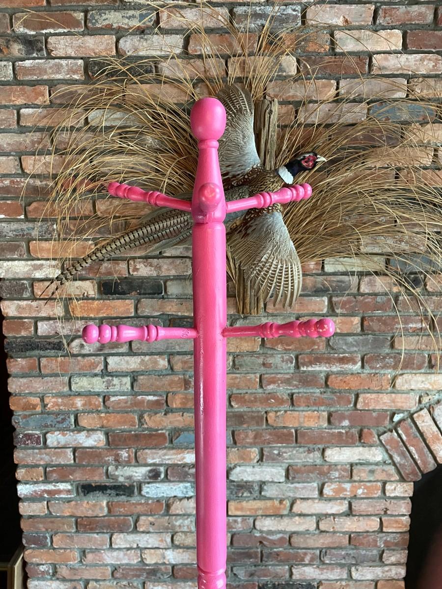 A Vibrant six hooks painted coat rack adds color to the room. Base: 15 1/2 x 57H.