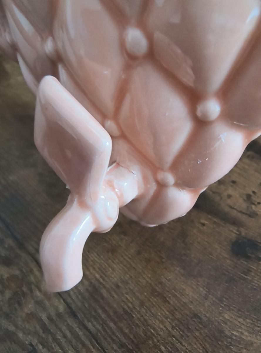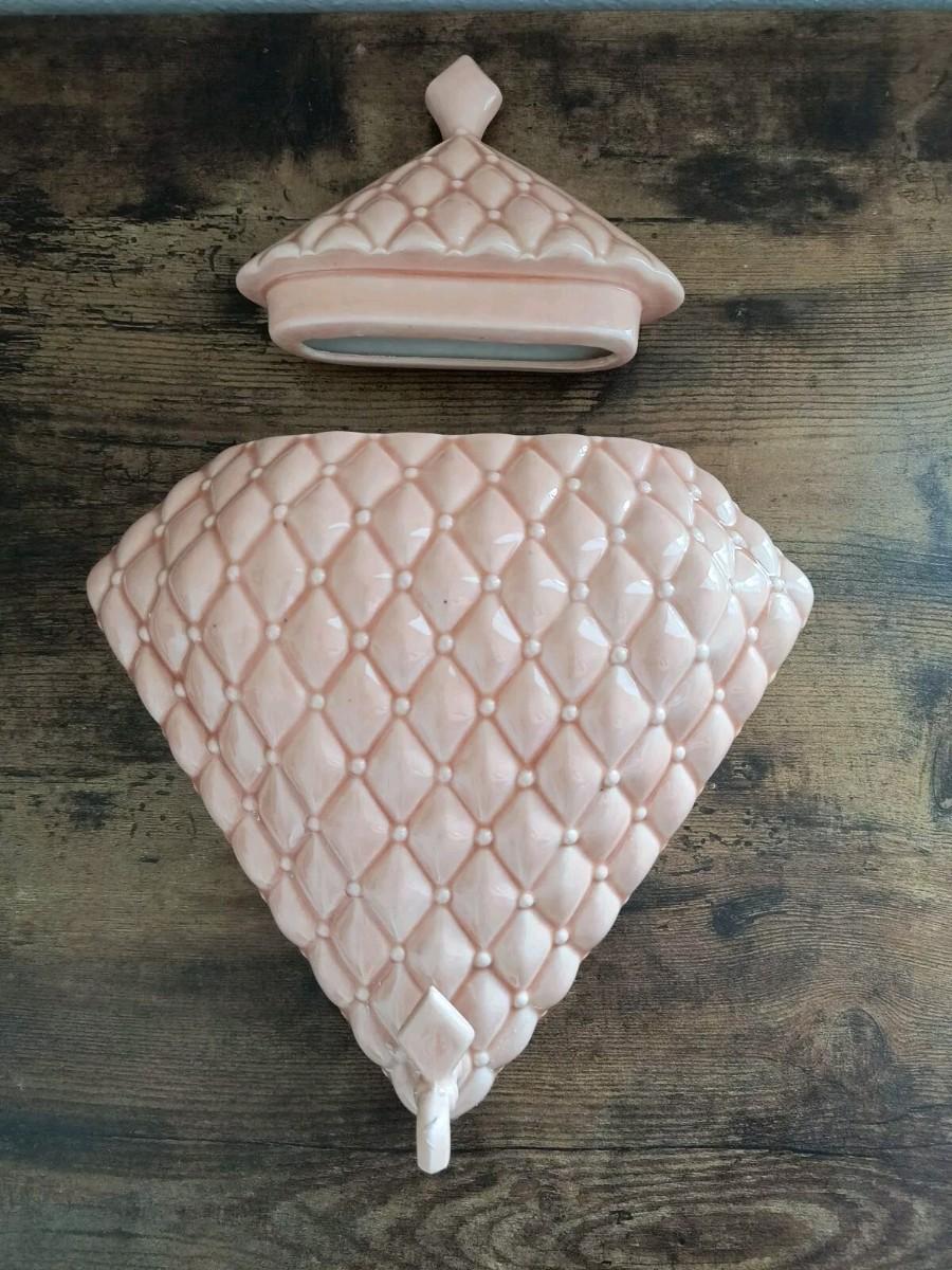 vintage Arnels diamond quilt pink peach porcelain wall pocket planter with lid