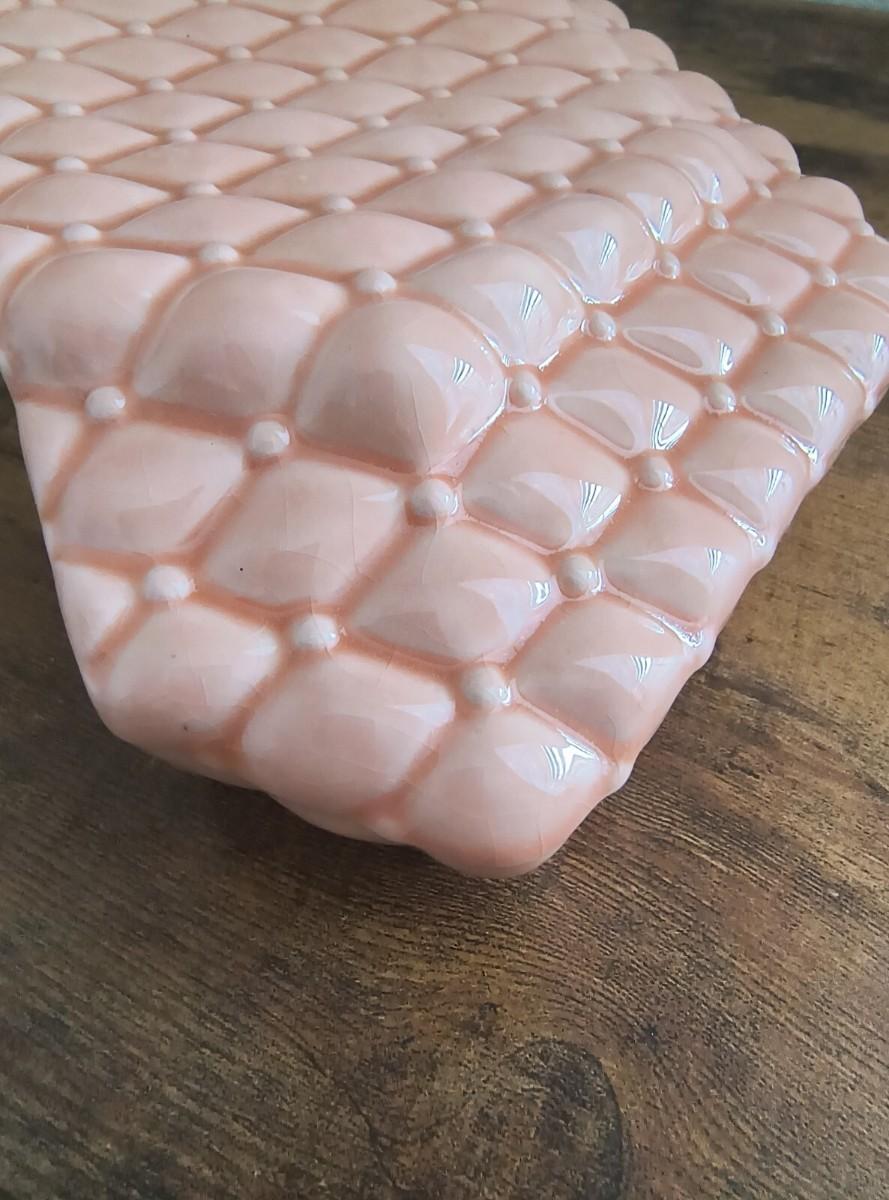 vintage Arnels diamond quilt pink peach porcelain wall pocket planter
