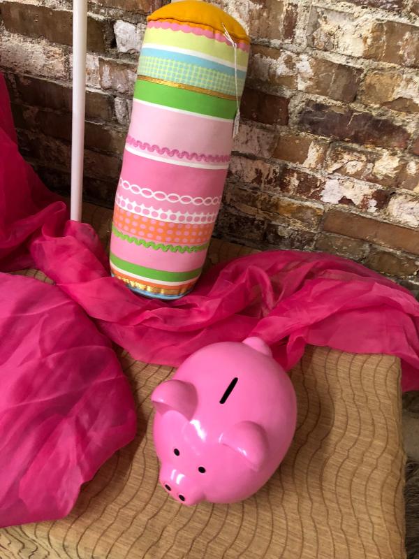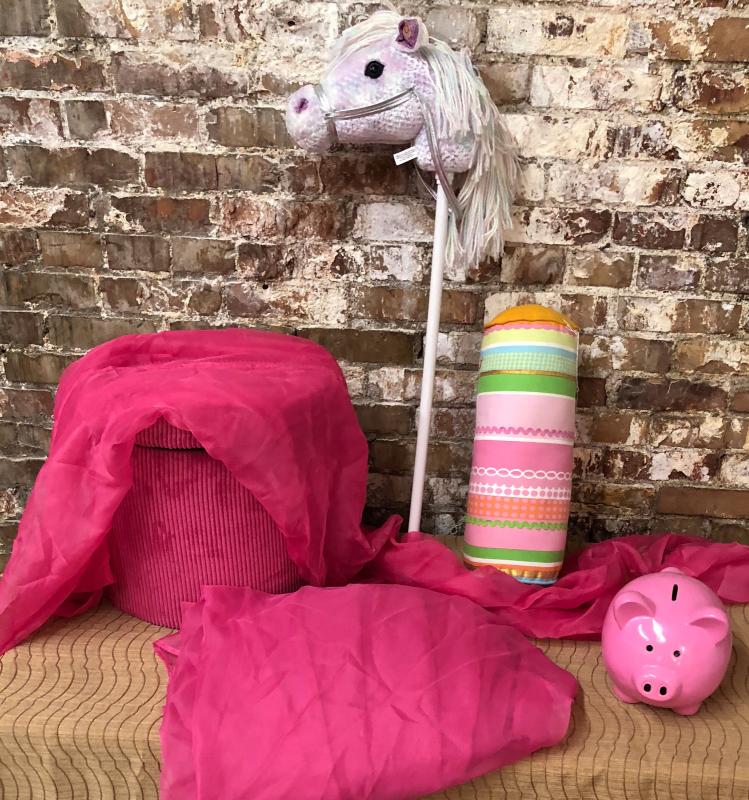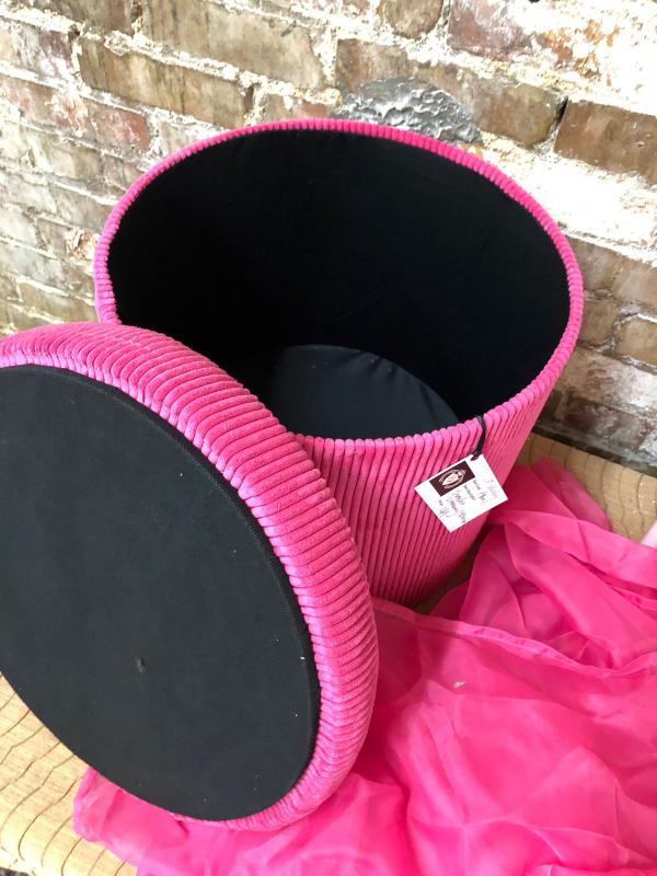 All items pre-ownwed but in excellent condition. 2 curtain panels 84" long, stool id 14" around and 15" tall.