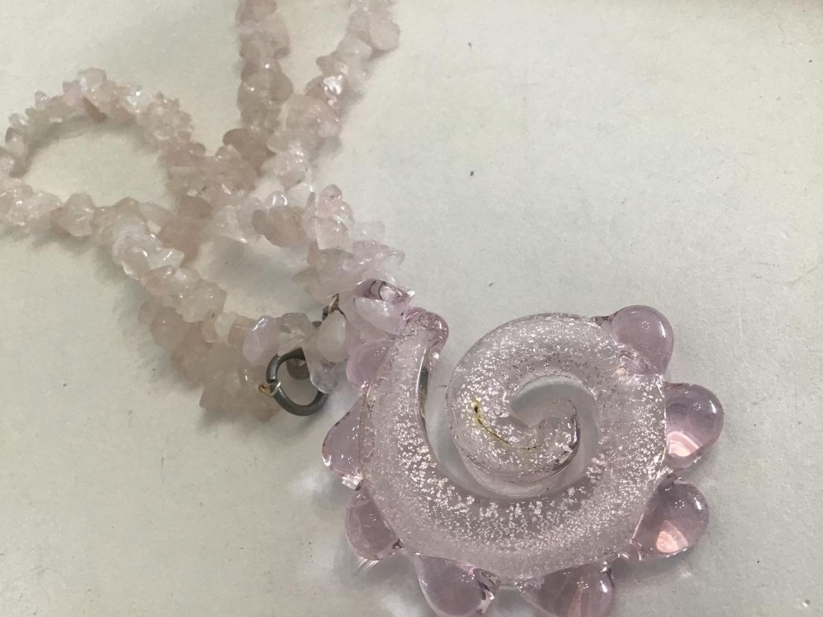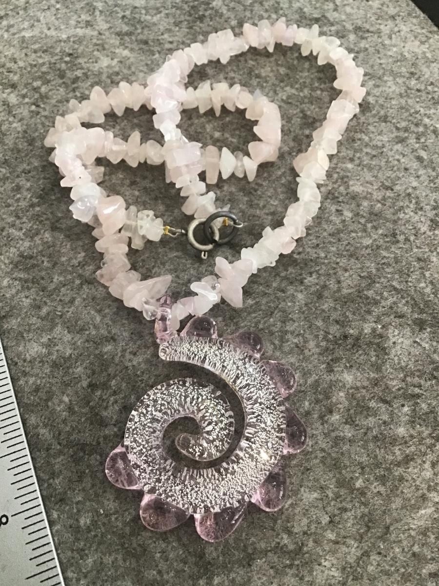 Pink Quartz Crystal With pink Glass Pendant