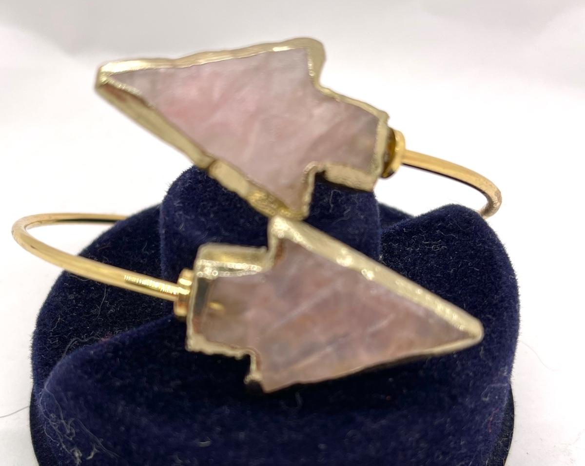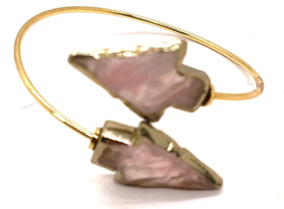 Pink Quartz Gold Tone Arrow Bracelet. Bangle style.