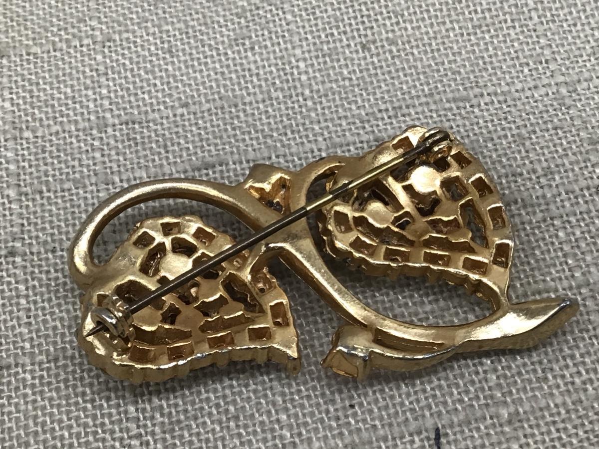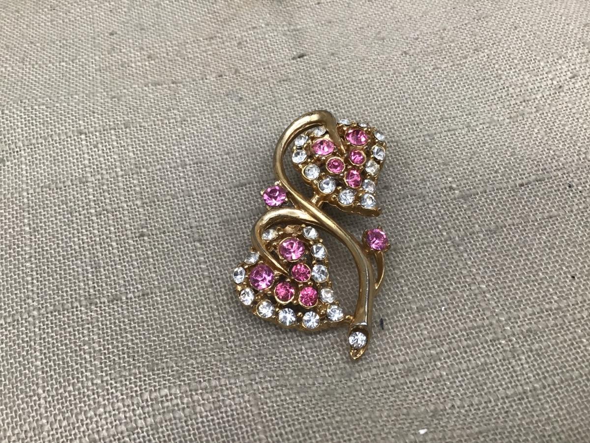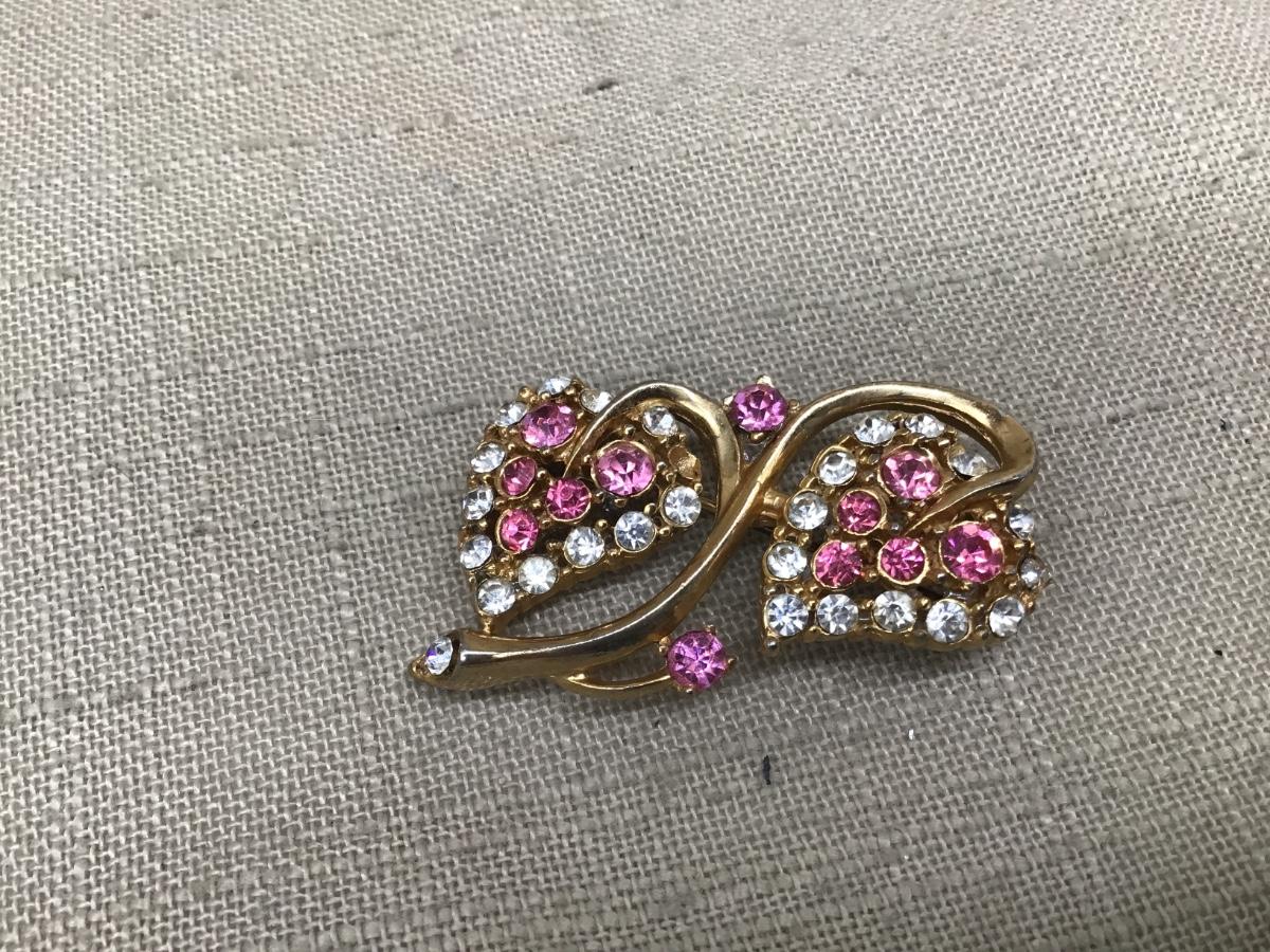 Pink Rhinestone Double Heart Brooch