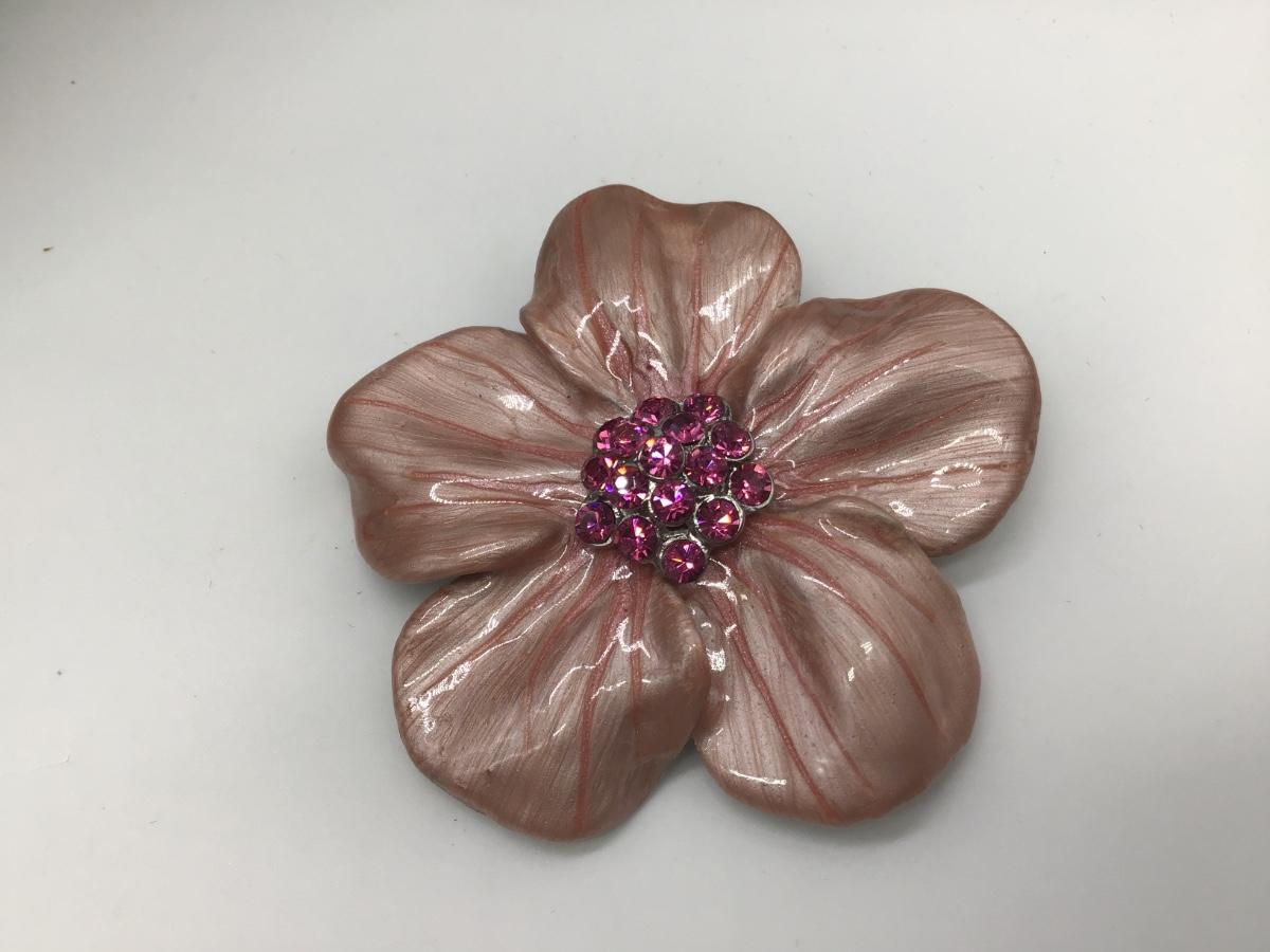 Pink Rhinestone Flower Brooch