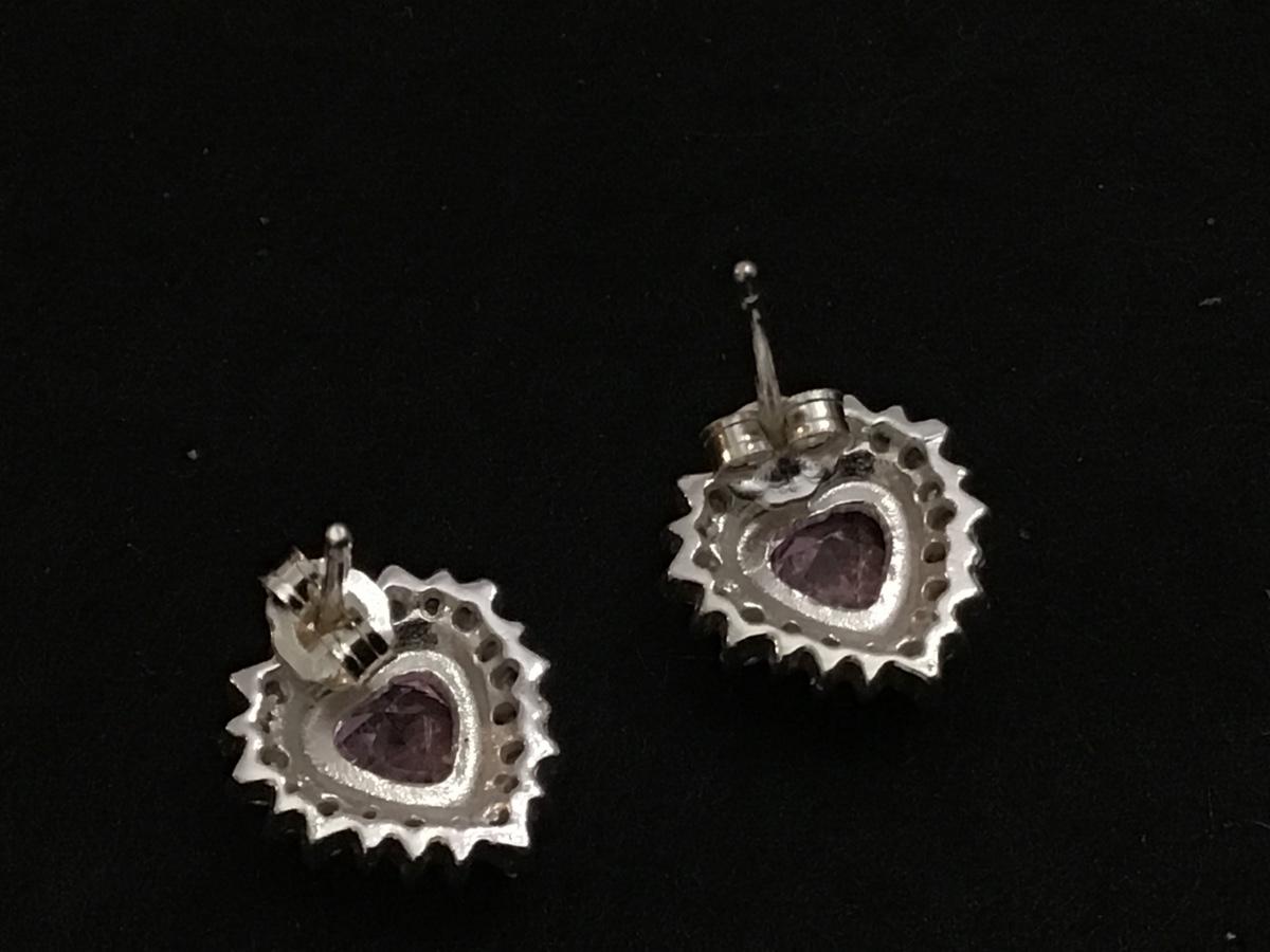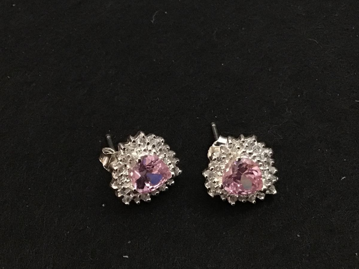 Pink Rhinestone Heart Silver Petite Earrings